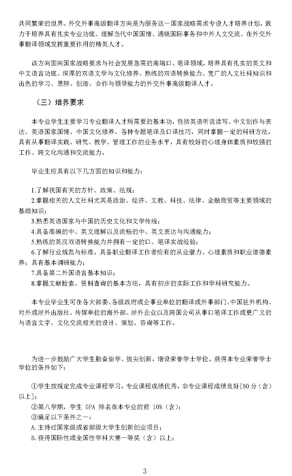 国产视频 翻译(外交外事高级翻译)专业本科培养方案(2024)