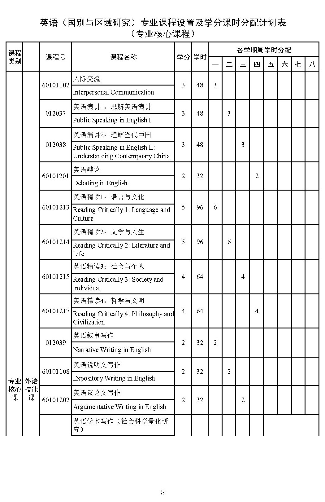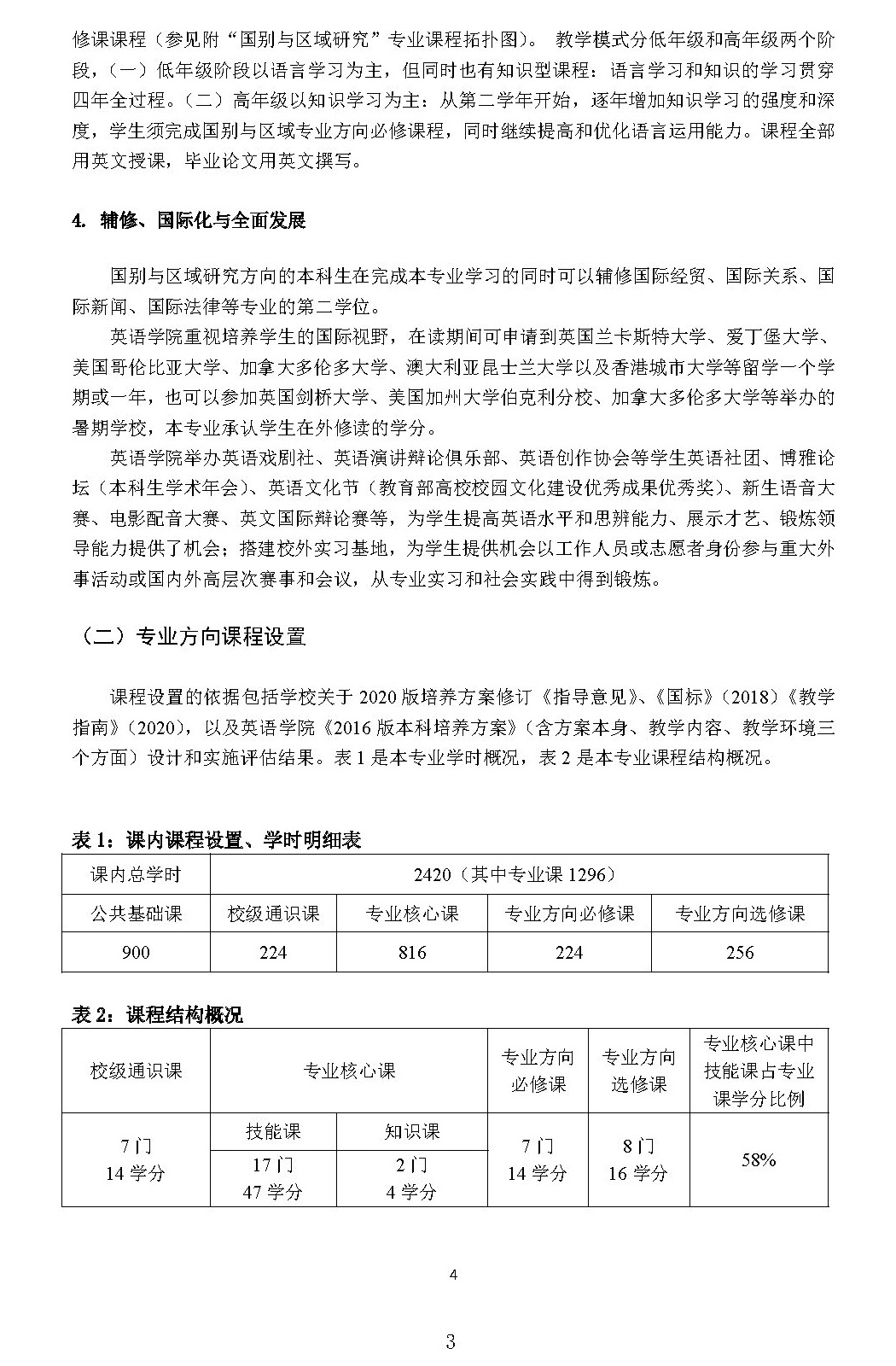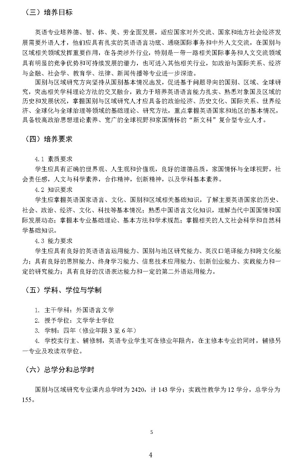国产视频 英语(国别与区域研究)专业本科培养方案(2024)