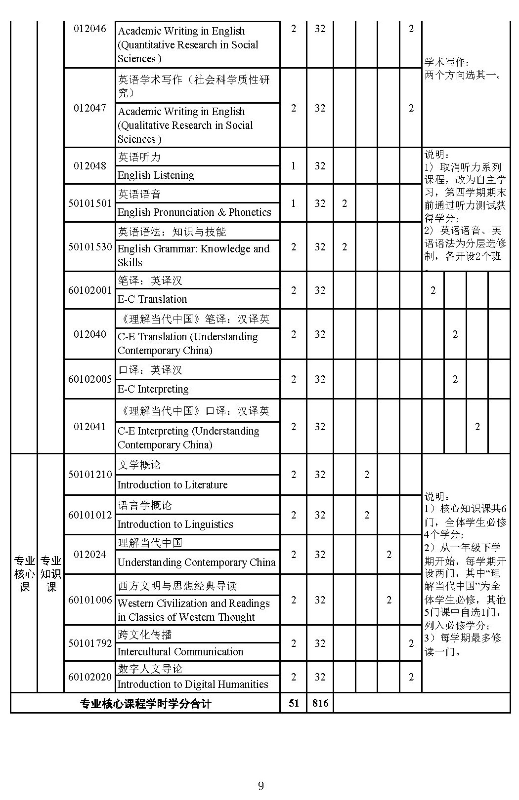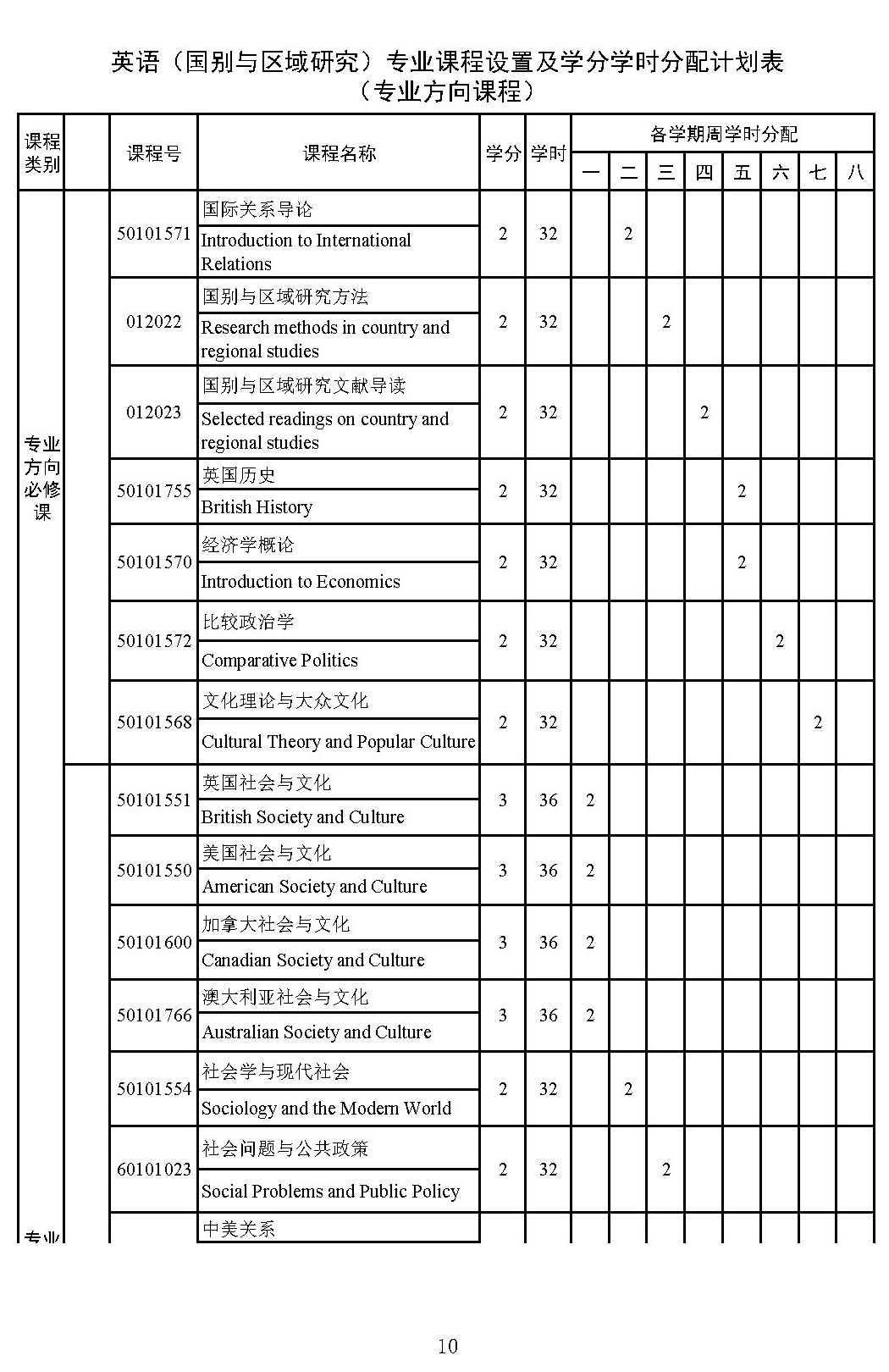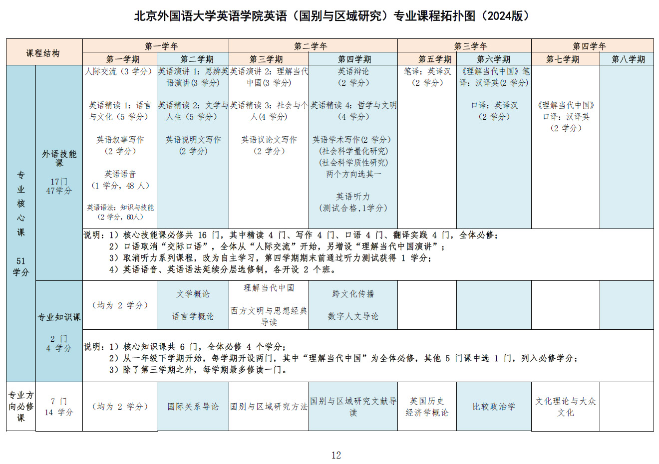 国产视频 英语(国别与区域研究)专业本科培养方案(2024)