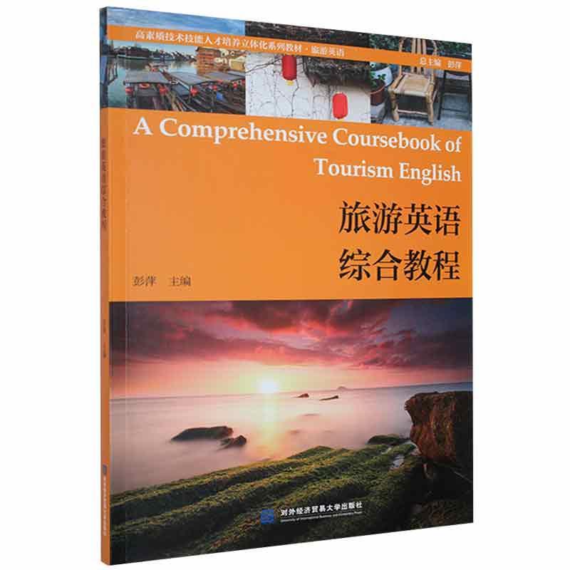 本套教材按照“工学结合、动态更新、立体展示”的指导思想进行整体规划,突出产教融合、校企“双元”育人,强调校企共同开发反映现代旅游企业新技术、新流程、新标准的课程教学内容和职业能力标准,校企合作编写和开发符合现代旅游业服务实际和旅游接待行业新趋势的教材。旅游综合英语是专业核心课程。该书共设置十五个单元,即十五个主题。其主要包括:旅游业介绍、旅行的意义、景点介绍、旅游娱乐活动、酒店服务、商务礼仪、行程安排等内容。每一主题都包含以下部分:对话、听力、课文。其中对话和听力各两篇,一篇中国内容,一篇外国内容。课文也共两篇。一篇精读,后面加生词及解释,注释,练习。一篇泛读,含翻译及口语讨论的内容。