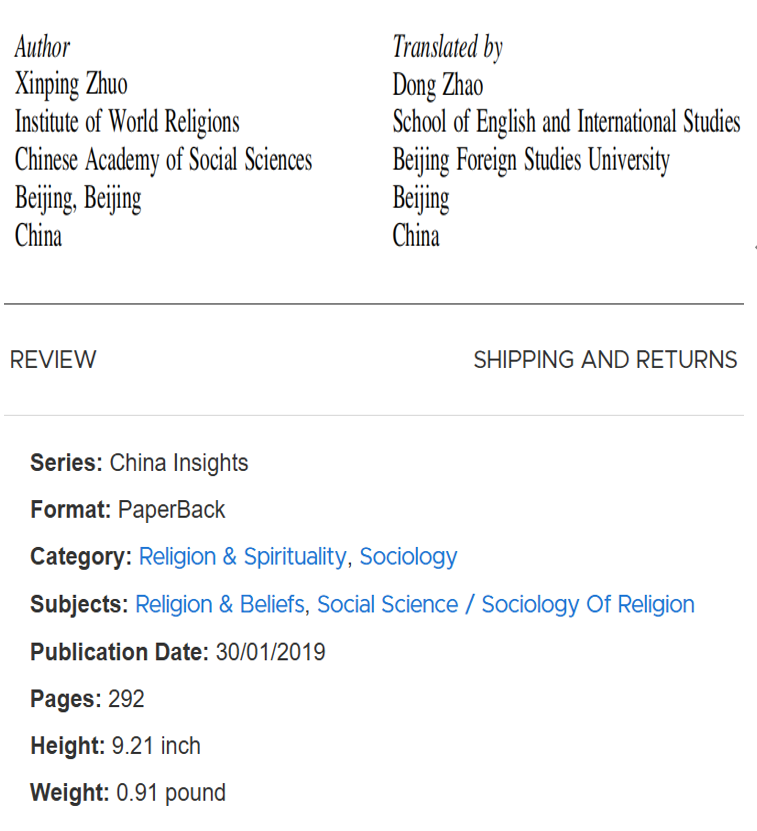 任教至今。研究兴趣为中华典籍英译;佛教、基督教比较研究。英文讲授课程包括高级汉英笔译、中国文化概论、儒释道经典导读、中国佛教经典导读、《圣经》的文学阐释、中西文明元典研读等。曾在卢布尔雅那大学、索菲亚大学、比利时欧亚研究所、国家行政学院等国内外院所讲学,曾赴加拿大卡尔加里大学、爱德华王子岛大学、英国兰卡斯特大学、匈牙利中欧大学等做短期学术研究与合作。出版英文著作《圣经与斯宾塞的仙后》(2008)、英文译著《中国人的宗教信仰》(2019)、汉译英诗集《银河之外的星光》(2022)、汉译英诗集《半简之美》(2024),主编、参编《英美诗歌选读》等高校英语专业教材20余部,发表国际期刊英文论文近20篇。现主持社科基金中华学术外译项目《时间与东亚古代世界》(2023),独立完成社科基金中华学术外译项目《中国人的宗教信仰》(2016)、北京市教委《中国佛教文化英文课程建设》、教育部国际司《去宗教极端化国际经验及我国的对策》、教育部国际司《加拿大民族宗教政策对我国的启示》等项目。社会兼职包括:Taylor & Francis 出版社审稿专家(佛教领域);法国学术期刊 Macrotheme Review编委;美国学术期刊 Diaspora, Indigenous, and Minority Education审稿专家;首都高端智库专家(2017-);中国佛学研究会(香港)会员、全国英国文学研究会会员等。