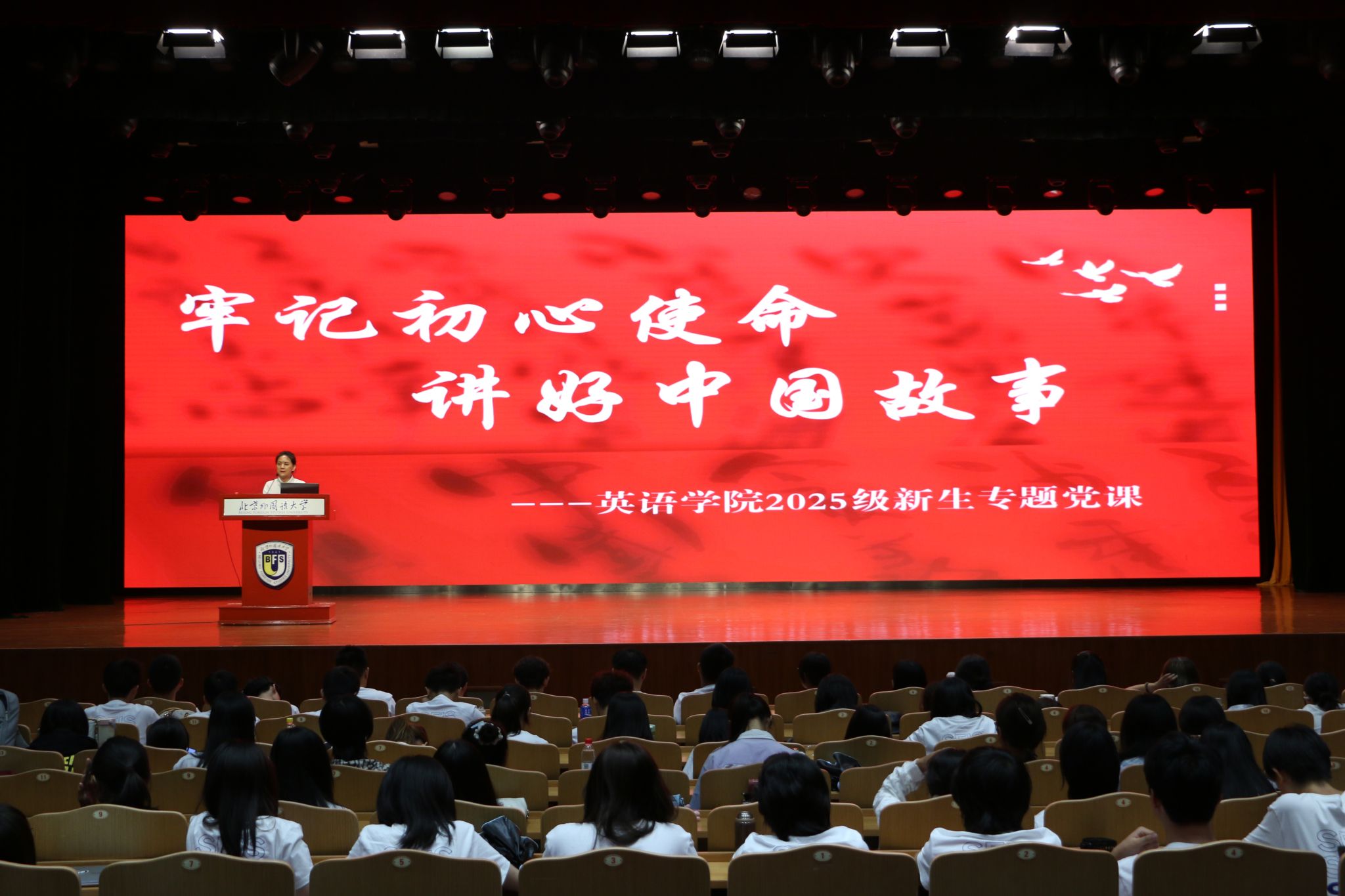 2025级新生开学典礼最后,学院党总支书记殷悦以“牢记初心使命,讲好中国故事”为题,为全体2025级本科生及研究生新生讲授专题党课。