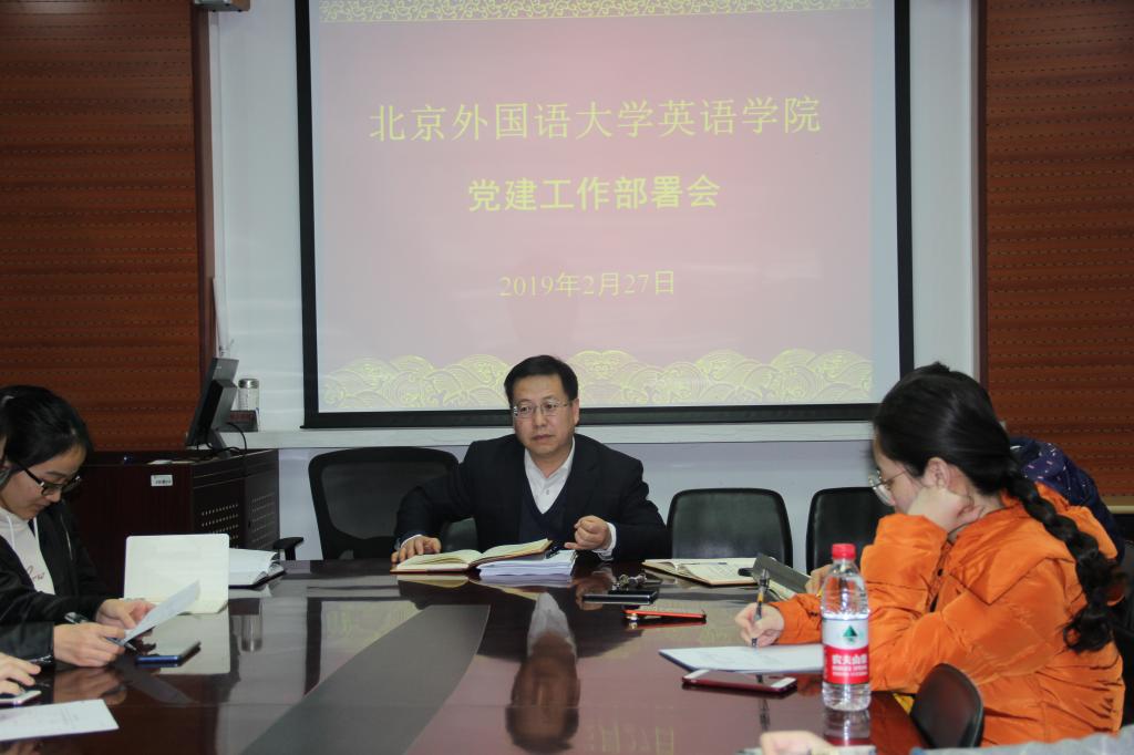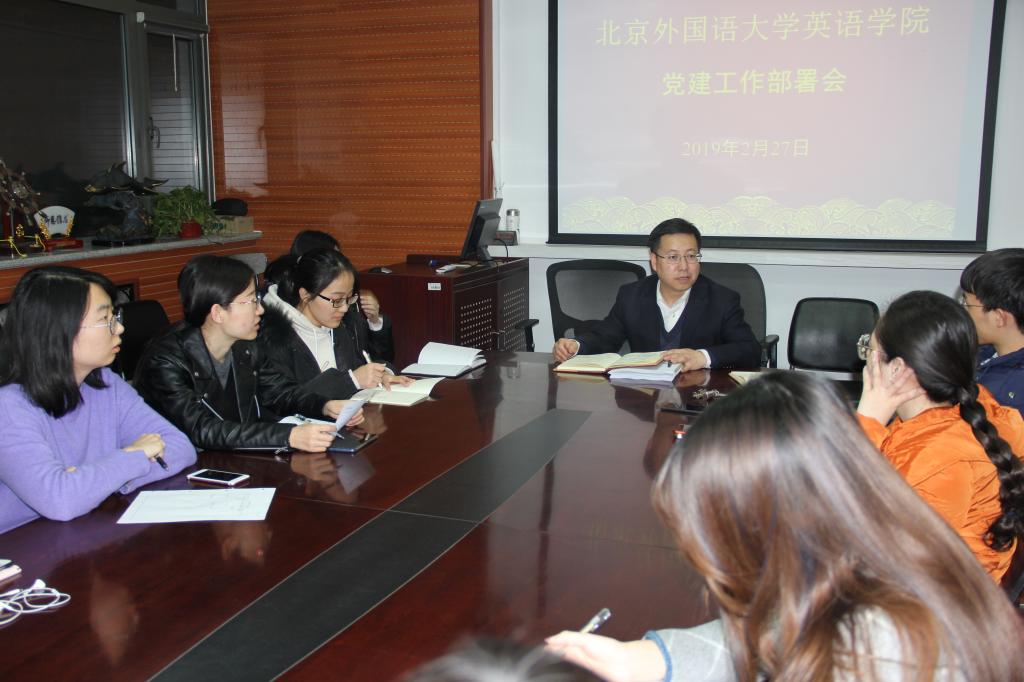 115会议室,召开2018-2019学年第二学期党建工作部署会。党总支书记路兴主持,辅导员于承杰、学生党支部书记参加。