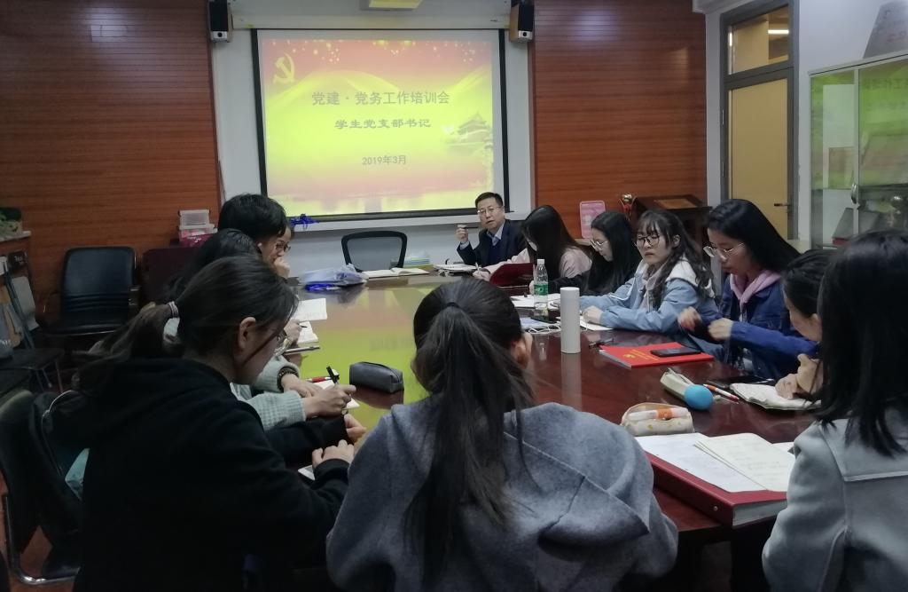 党总支在115会议室组织召开学生党支部书记党务工作培训会。党总支书记路兴、辅导员于承杰,各学生党支部书记、副书记参加。