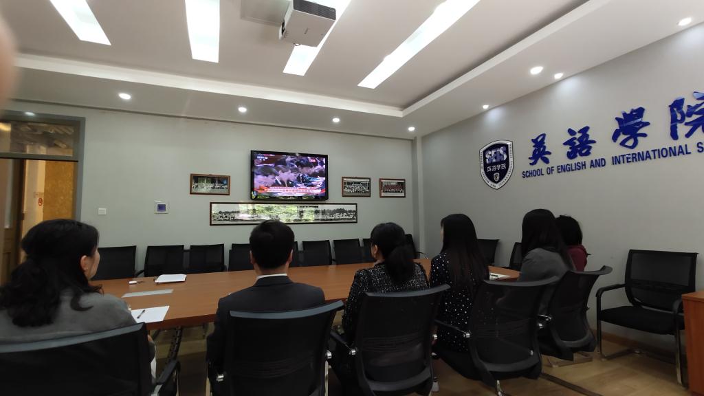 430日周二上午,国产视频 组织师生观看纪念五四运动一百周年大会现场直播,听取习近平总书记重要讲话。党总支书记、专业教师、辅导员、办公室主任、教务教学秘书及学生代表参加。