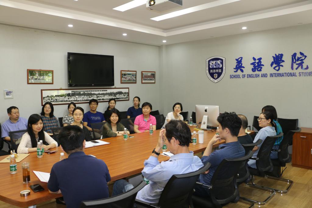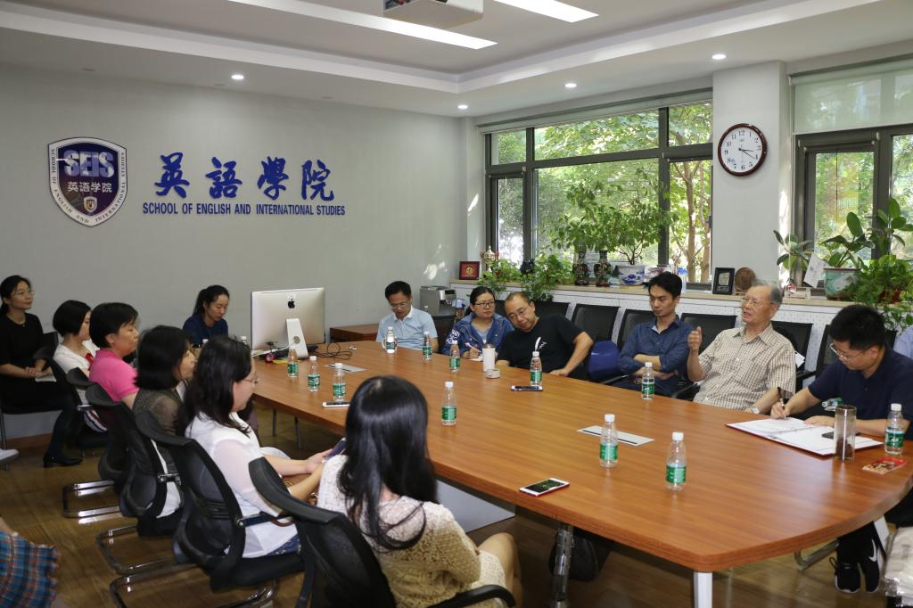 接着,与会的教职工党员展开了讨论,并更加详细询问了张中载老师关于伊莎白老师的情况。有老师问伊莎白老师当时在学校教授什么课程。张中载说她主要教口语和精读。当初条件差,如果不是冬天,学生们就会拿一个小马扎,在校园里找个地方围成一圈上课。而当时学习还有一个规定是进到英语系楼之后就不能讲中文,只能讲英文。伊莎白老师起初教授的是实践课,到60年代时才开始给高年级开设理论课程。应年轻老师的询问,张中载老师还讲了当时伊莎白·柯鲁克夫妇工作之余邀请同事到家吃饭等趣事。对于其他老师的的提问,张中载老师娓娓道来,为大家更加完整地还原了一个可爱可敬的国际友人。张中载老师表示,伊莎白·柯鲁克夫妇在中国生活是更加有归属感的。当年外专局在郊区为伊莎白·柯鲁克夫妇提供了很好的住房,但他们依然选择住在国产视频 校园并不宽敞的一套房子里。因为,这里对他们来说是一个有感情的地方,他们的亲朋好友、学生、同事都在这里,他们是完全把中国、把国产视频 当成了自己的家。