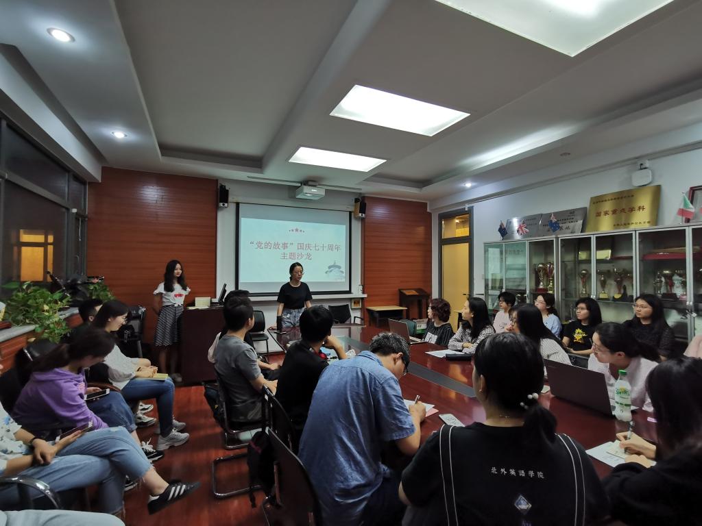 本科生高年级与低年级党支部联合开展国庆七十周年主题党日教育活动。会议由党支部书记罗振令主持。学习教育会分党的历史教育、党的故事分享以及党员《学习纲要》学习交流三部分组成。