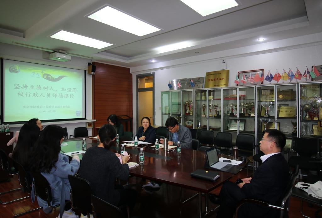 教职工行政党支部在英语楼115会议室召开“坚持立德树人,加强高校行政人员师德建设”教育学习活动。