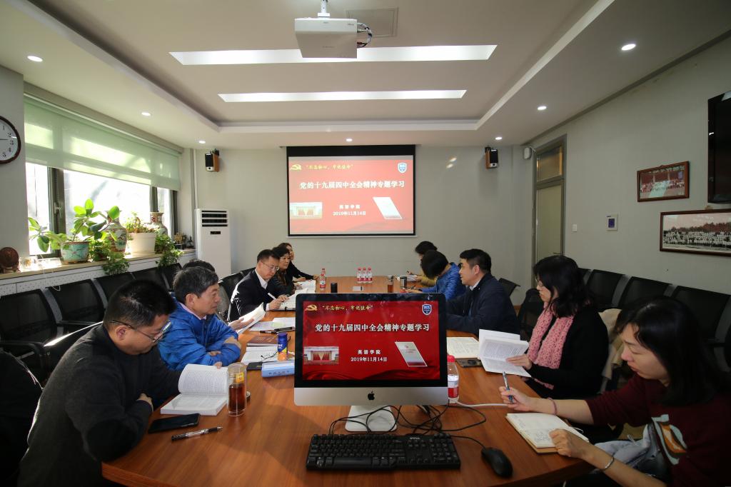 理论中心组召开党的十九届四中全会精神专题学习讨论会,交流分享学习党的十九届四中全会精神的认识和体会。学院班子全体成员、党总支委员和教工党支部书记参加学习研讨。会议由党总支书记路兴主持。参会人员会前结合实际研读了学校党委下发的《党的十九届四中全会<决定>学习辅导百问》。