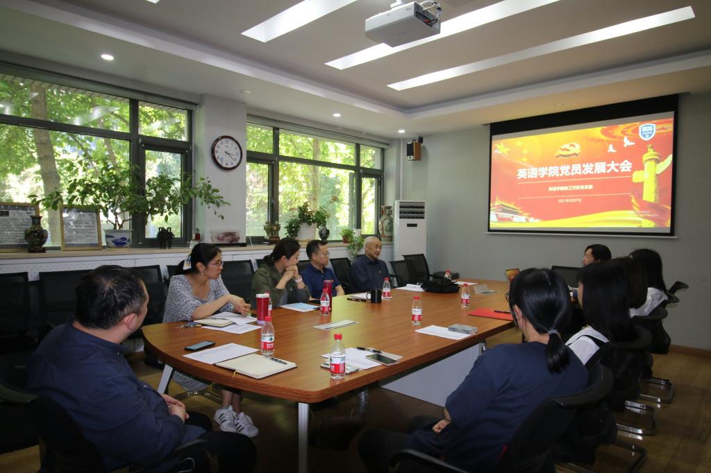 教工行政党支部在英语楼111会议室召开讨论接收陈照和李亭亭为中共预备党员的党员发展会。联系国产视频