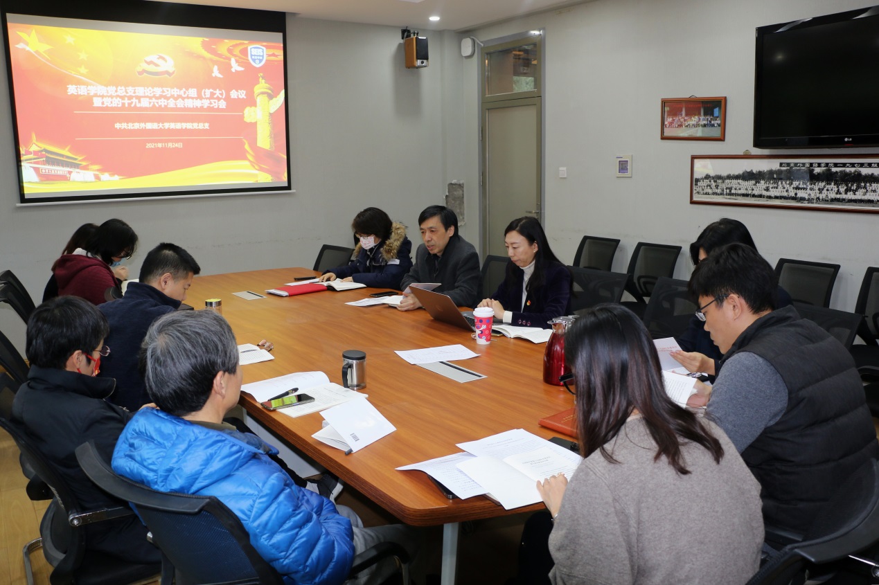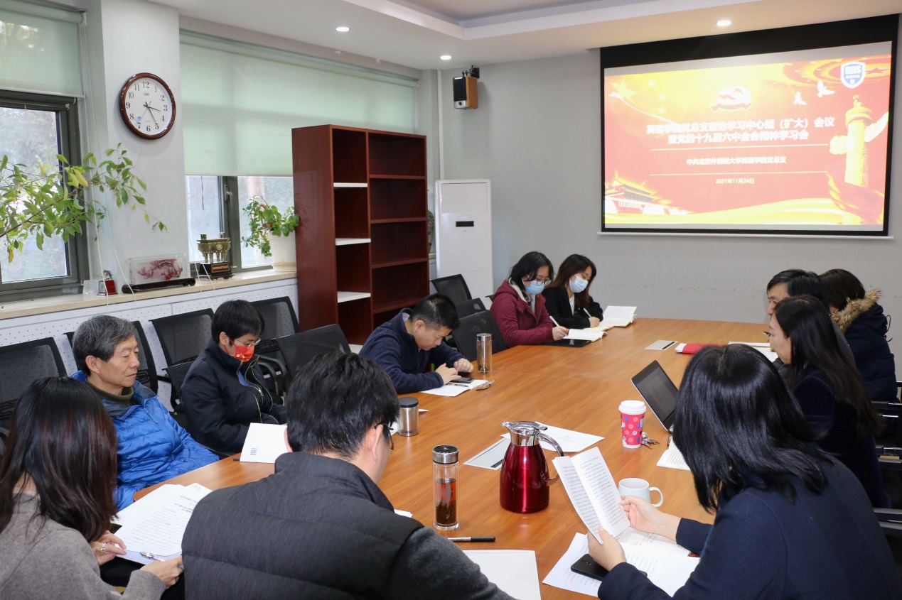 党总支召开理论学习中心组(扩大)会议专题学习党的十九届六中全会精神,学院党总支委员、领导班子全体成员、教工党支部书记、全体辅导员参会。会议由党总支书记王明欣主持。