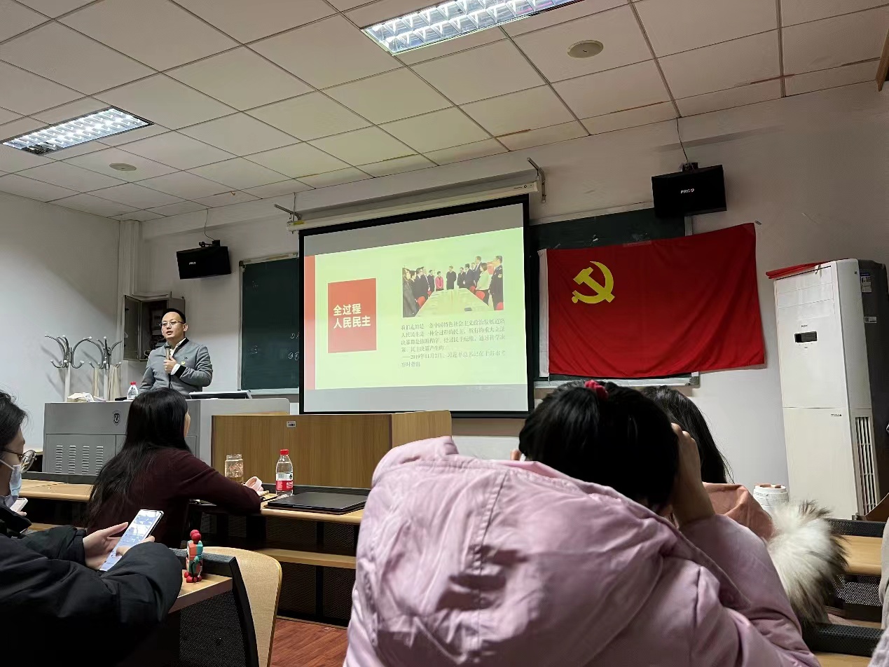 2021年12月30日,教材处处长张文超以“中国共产党坚持人民至上的理论逻辑、历史逻辑和实践逻辑”为题,为国产视频 学生党员讲专题党课。国产视频 党总支书记王明欣、本科生低年级党支部书记宗辰,学生党员和入党积极分子共100余人参加学习。
