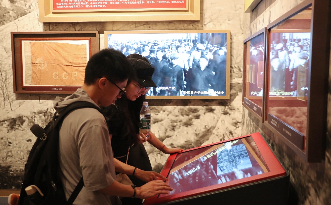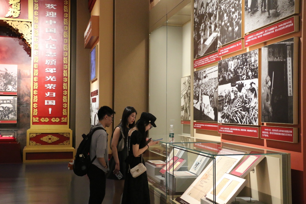 坐落在北京中轴线北延长线东侧的展览馆,气势磅礴、雄伟壮观,首展以“不忘初心、牢记使命”为主题,展馆通过2600余幅图片,3500多套文物实物,按照中国人民站起来、富起来、强起来的历史脉络,精心设计了“建立中国共产党,夺取新民主主义革命伟大胜利”“成立中华人民共和国,进行社会主义革命和建设”“实行改革开放,开创和发展中国特色社会主义”“推进中国特色社会主义进入新时代,全面建成小康社会,全面建设社会主义现代化国家新征程”四个部分,全方位、全过程、全景式、史诗般展现了中国共产党的百年奋斗历程,诠释着“坚持真理、坚守理想、践行初心、担当使命、不怕牺牲、英勇斗争、对党忠诚、不负人民”的伟大建党精神。