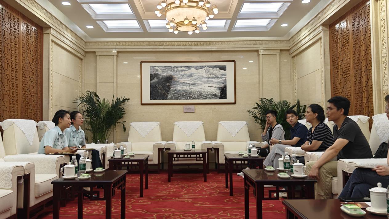 党总支书记殷悦、党总支宣传委员于承杰老师与笔译支部书记孙琪、副书记董芳衍等支部委员就双方共建合作事宜展开座谈。