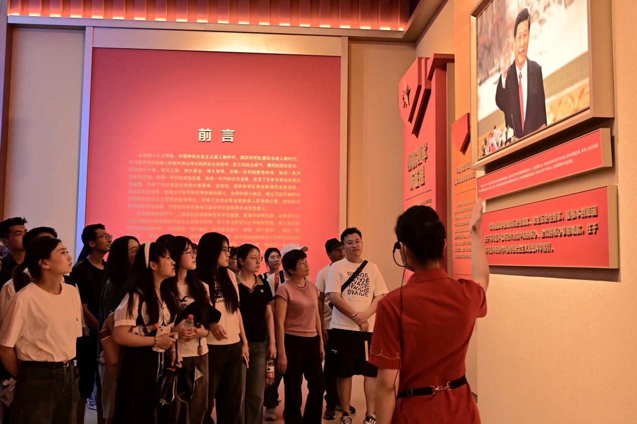 军博是中国第一个综合类军事博物馆,1960年8月1日开放,是向国庆10周年献礼的首都十大建筑之一。在讲解员的陪同下,支部党员一同参观了新时代国防和军队建设成就展,进一步加深了对我国军队发展历程、国防建设、军事科技及现代化建设的了解,认识到中国国防建设的新成就。师生们还一起参观了位于中央北大厅的兵器馆,这里能看到荣立赫赫战功的战斗机、人民解放军第一代地对地战术导弹东风一号等各种武器装备,感悟到“人民军队党缔造,人民军队党领导”的血脉传承和“人民军队人民爱,人民军队爱人民”的鱼水深情。