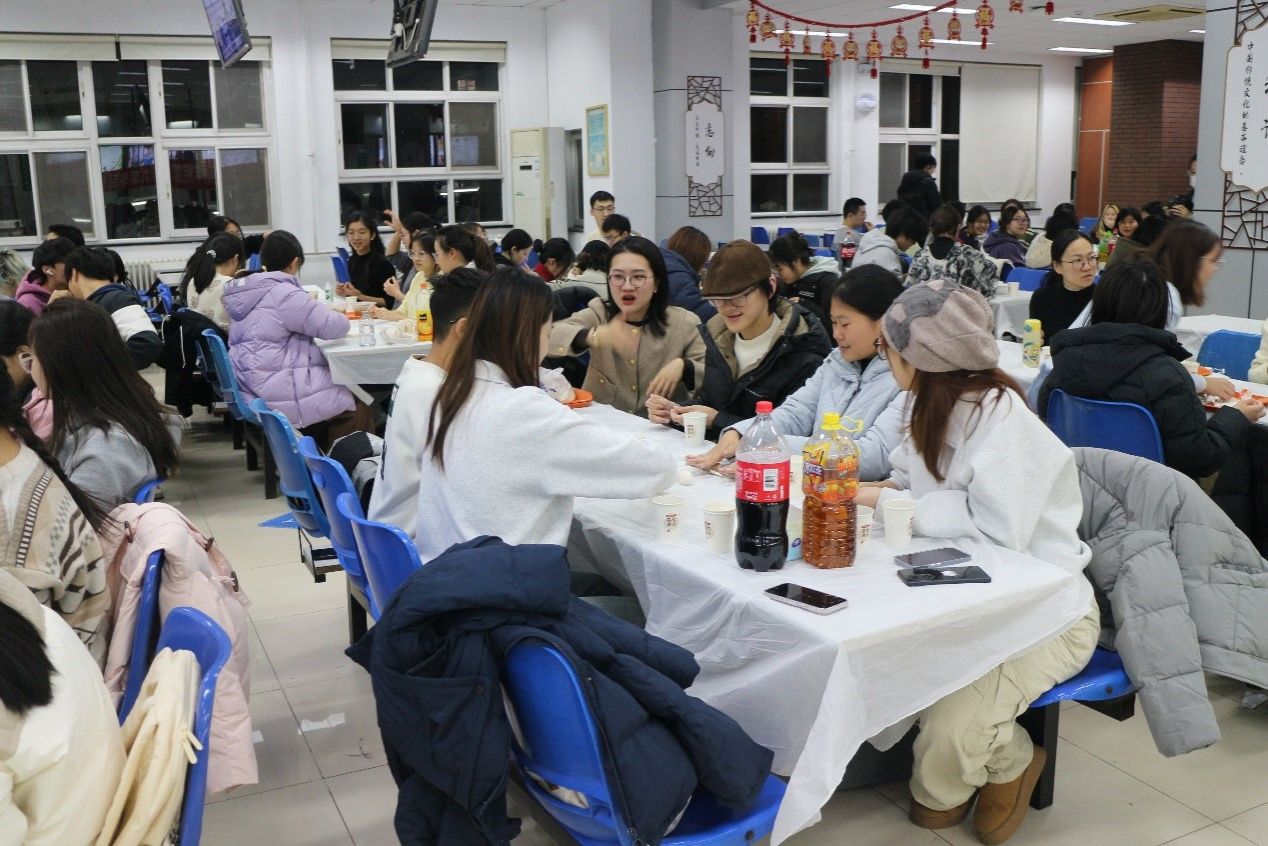 随着热气腾腾的饺子出锅,同学们围坐在一起,品尝着自己的劳动成果。热乎乎的饺子在寒冷的冬夜里格外温暖,大家边吃边聊,在欢声笑语中感受传统节日的魅力,也相互祝福着明年有一整年的好福气。