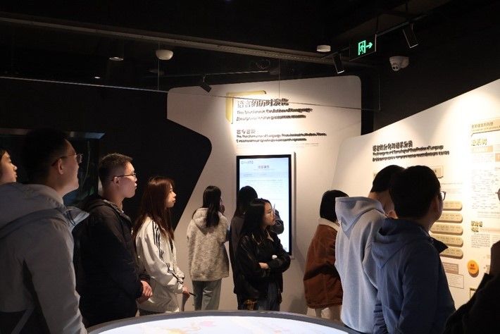世界语言博物馆,观摩语言文字的发展嬗变,依托馆内先进有趣的展示设备,体会语言与科技互动革新对思想认知的深远影响。随后,党支部书记李柯凝带领活动成员移步东校区,一路讲述国产视频