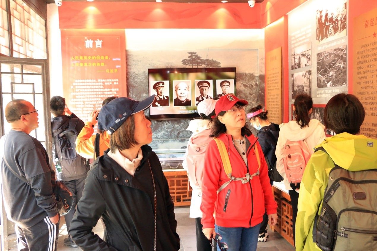 教师驻足观看,认真倾听讲解员的讲解。由于炭厂村位于苇甸沟中心地带,致使日本侵略者对炭厂村进行了多达13次的惨无人道的烧杀抢掠,但是其残暴的行为并没有磨灭炭厂村人民的革命斗志。在中国共产党领导下,村民积极抗战,协助八路军,保障后勤,组建民兵队伍,配合挺进剧社宣传,加强情报联络,坚持斗争最终迎来抗战胜利,全国解放。