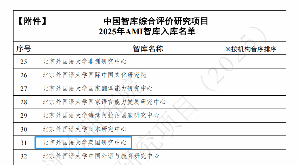 英国研究中心经过自主申报、学校初审、专家评审、信息填报、最终遴选等程序,成功入选,是全国558家优秀智库之一。