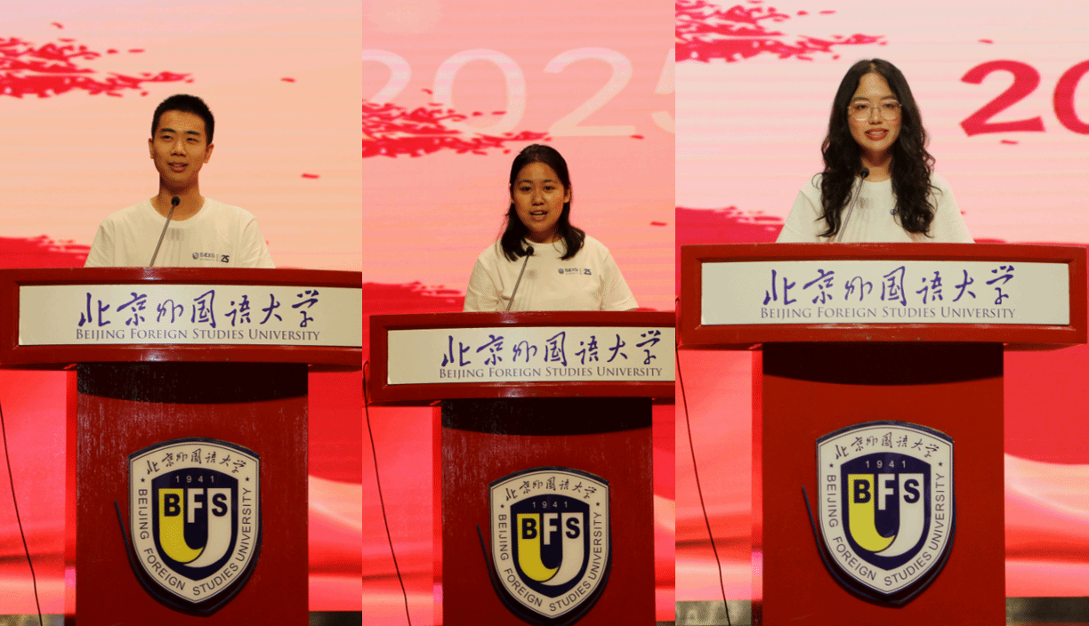 的历史底蕴为引,分享了自己的三点愿景:家国之情、求真之心与担当之志。她期待与同学们一起,心怀国家、放眼世界,不断提升自己的专业能力与素养。2025级国际项目新生杨景行同学则认为,同学们不仅要注重“听说读写译”,更要把握不同文明背后的历史脉络、文化内涵与时代精神,也期待同学们在国产视频