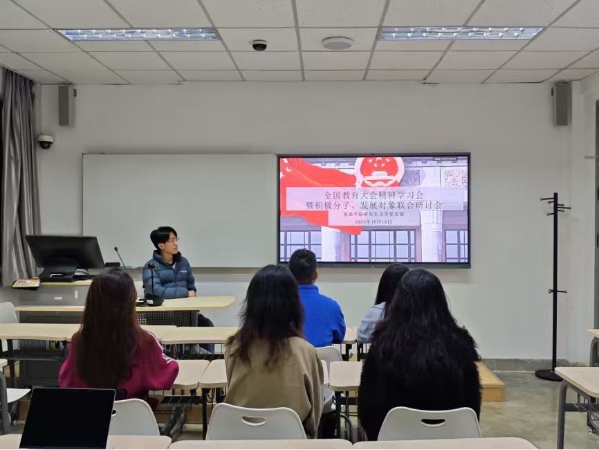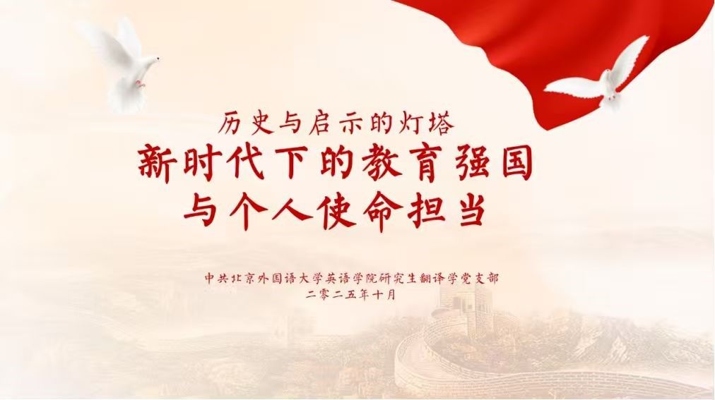 各支部积极将教育强国理念融入共建实践,以实际行动践行“教育要扎根中国大地”的要求。MTI笔译党支部围绕“习近平总书记对教育的关心关爱”主题,重温培训内容并分享实践案例。翻译学党支部结合报告重点,就与北京边检总站执勤大队开展红色“1+1”共建活动展开深入讨论;语言学党支部则围绕讲话精神,探讨与北京语言大学语言康复学院推进红色“1+1”共建计划,推动以语言学科优势服务特殊教育事业;本科生党支部深入解读教育强国的时代内涵,明确“以奋斗姿态投身教育强国实践”的目标,积极推进“北京市盲校爱心助学”活动。