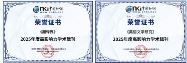 旗下《翻译界》与《英语文学研究》双双入选,体现了学院在学术平台建设与知识生产方面的扎实贡献。