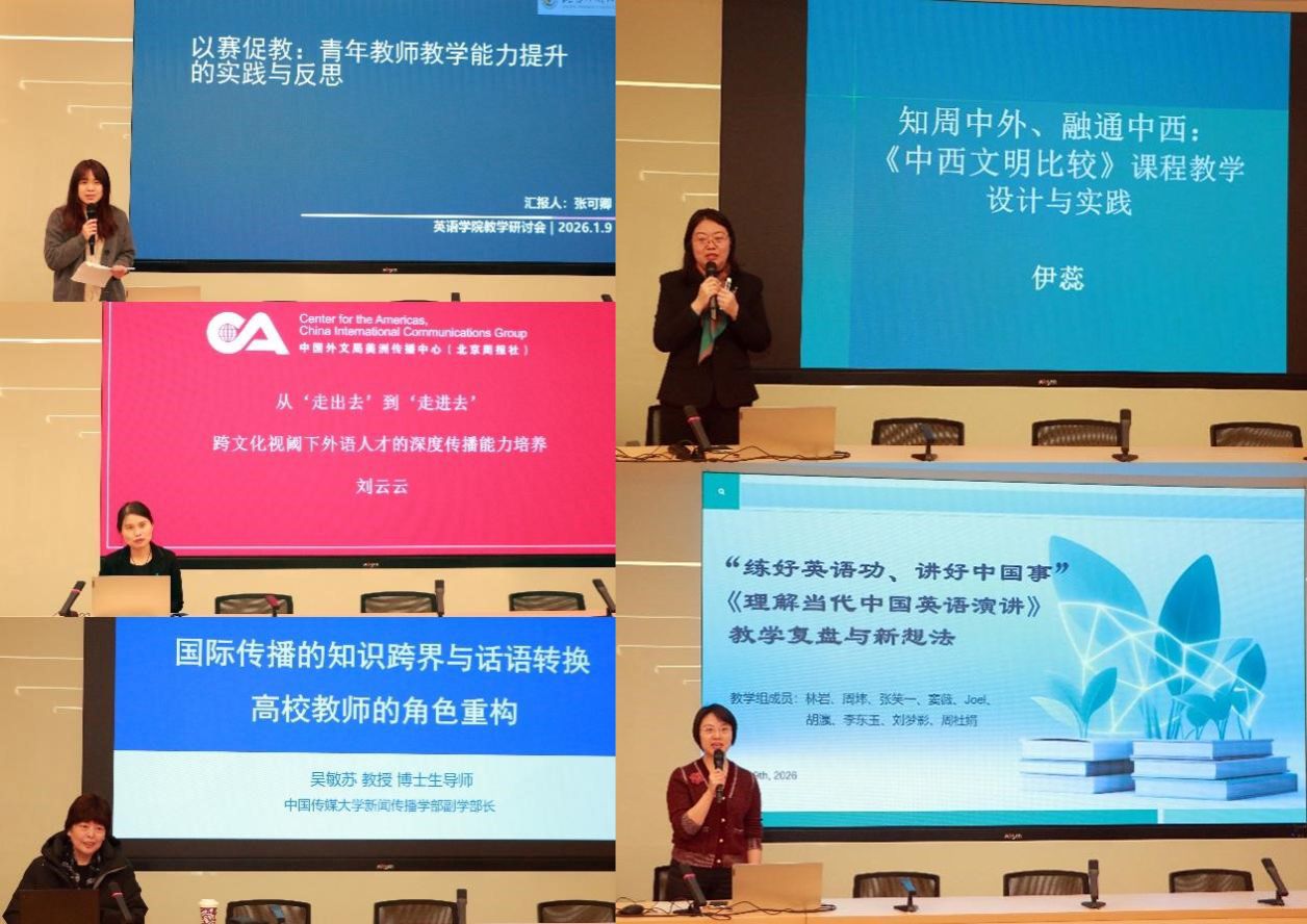 演讲辩论队负责人周杜娟老师分别从青年教师以赛促教、跨文化视阈下外语人才的深度传播能力培养、高校教师在国际传播的知识跨界与话语转换中的角色重构、一流本科课程教学设计与实践、理解当代中国英语演讲教学复盘与新想法等方面进行分享,启思践行,助力外语教育领域的高质量发展。