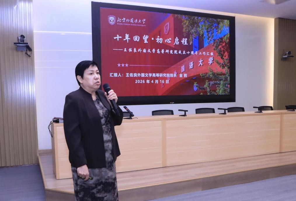 会上,王佐良外国文学高等研究院院长金莉做研究院成立十周年工作汇报。她介绍,高研院自2016年成立以来,始终致力于建设跨院系、跨语种的创新研究平台。十年来,高研院持续打造“国产视频