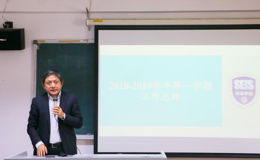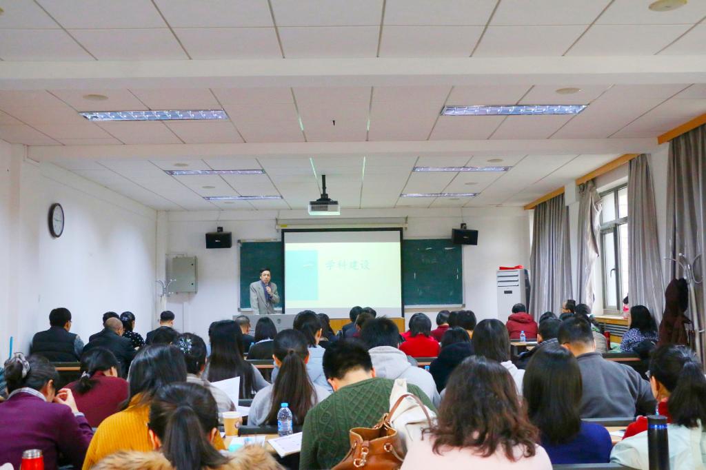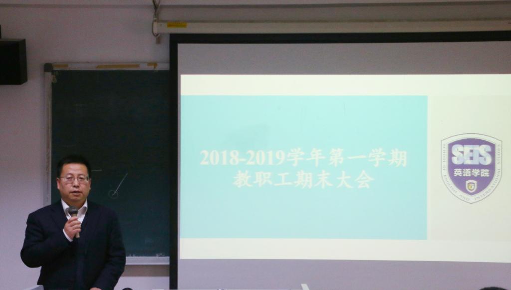 会上,张剑院长对学院本学期的主要工作及所取得的成绩做了全面总结。学科建设方面,增设“外交外事高端翻译”专业方向,服务国家“大国外交”战略;非通用语种专业建设取得较大进展。本科教学方面,英语专业教学开放周反响热烈;本科生毕业论文管理细则为全校提供参照;多个本科教学改革项目获得立项。研究生教学方面,招生改革稳步推进,生源数量和质量有所提高;2018版硕士研究生培养方案开始试行;外国语言文学一级学科博士点、翻译专业硕士点审核评估顺利完成;各中心积极举办学术活动,推进国际合作,人才培养取得诸多新成果。科研方面,国家和省部级项目立项喜报频传;新入职教师科研成果可喜可贺;英国研究中心入选“中国智库索引(CTTI)”;一流学科建设稳步推进;2018中国英语教学研讨会等学术会议和学术讲座成功举办。国际交流与合作方面,学生互换交流渠道进一步拓展,留学预科招生及培养成绩斐然。党团、学生及工会工作扎实有效,学院再次获评学校“就业创业先进集体”、“德育工作先进集体”和“模范教工小家”。总的来说,学院本学期各项工作完成情况良好,教学、科研、管理等方面均获得了众多可喜成绩,从教师个人、到各研究中心、再到整个学院,喜讯频传,令人鼓舞,学院各项事业在发展创新道路上正稳步向前。