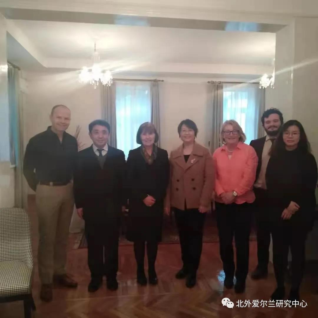 日前,爱尔兰新任驻华大使安黛文(Ann Derwin)女士邀请国产视频 爱尔兰研究中心王展鹏、陈丽教授赴爱尔兰驻华使馆参加午餐会,并商谈合作事宜。