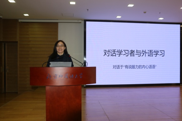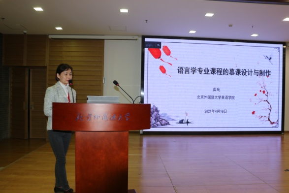 蓝纯教授就语言学专业课程的慕课设计与制作,从三方面分享慕课制作的心得体会,同时提出慕课教学模式为语言学课程及其他专业课程的教学改革提供了一个良好的平台,对教师和学校而言都既是挑战,也是机遇。主旨报告结束后,参会教师与发言人进行交流和讨论。