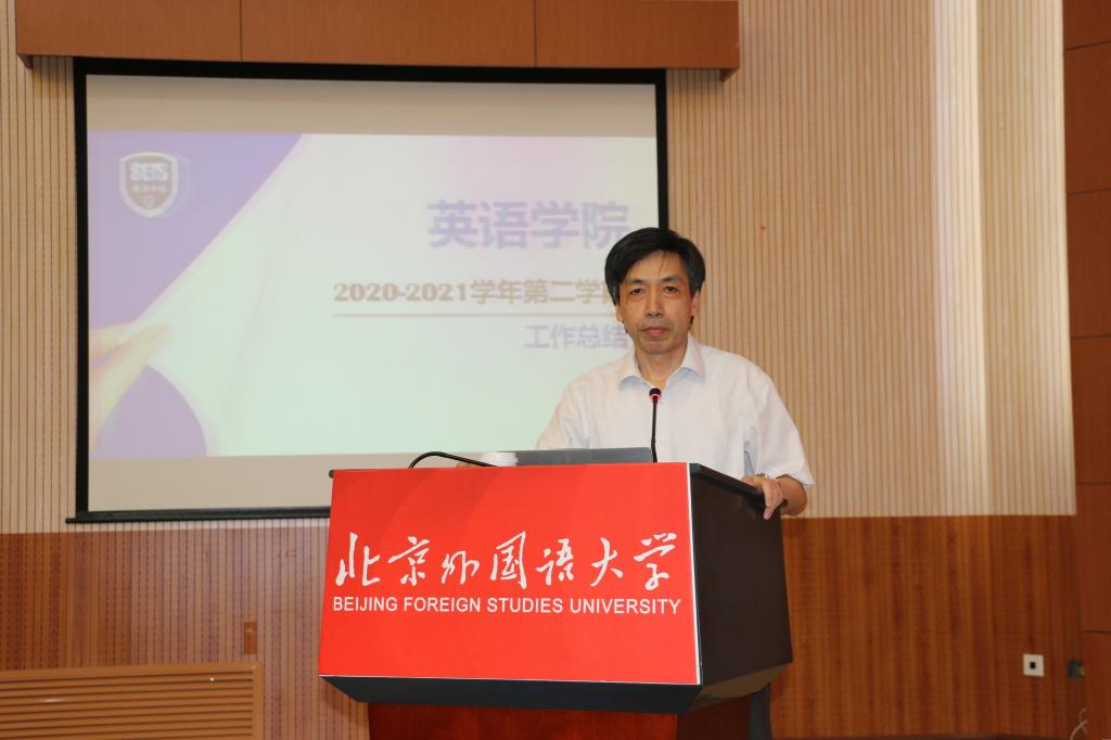 会上,张剑院长从学科建设、本科教学、研究生教学、科研工作、国际合作、学生工作及党建、工会等方面对学院本学期工作进行全面总结。学科建设方面,本学期重点推进北京市一流专业“英语语言文学”专业建设,在《习近平谈治国理政》(英文版)“三进”项目申报中,国产视频