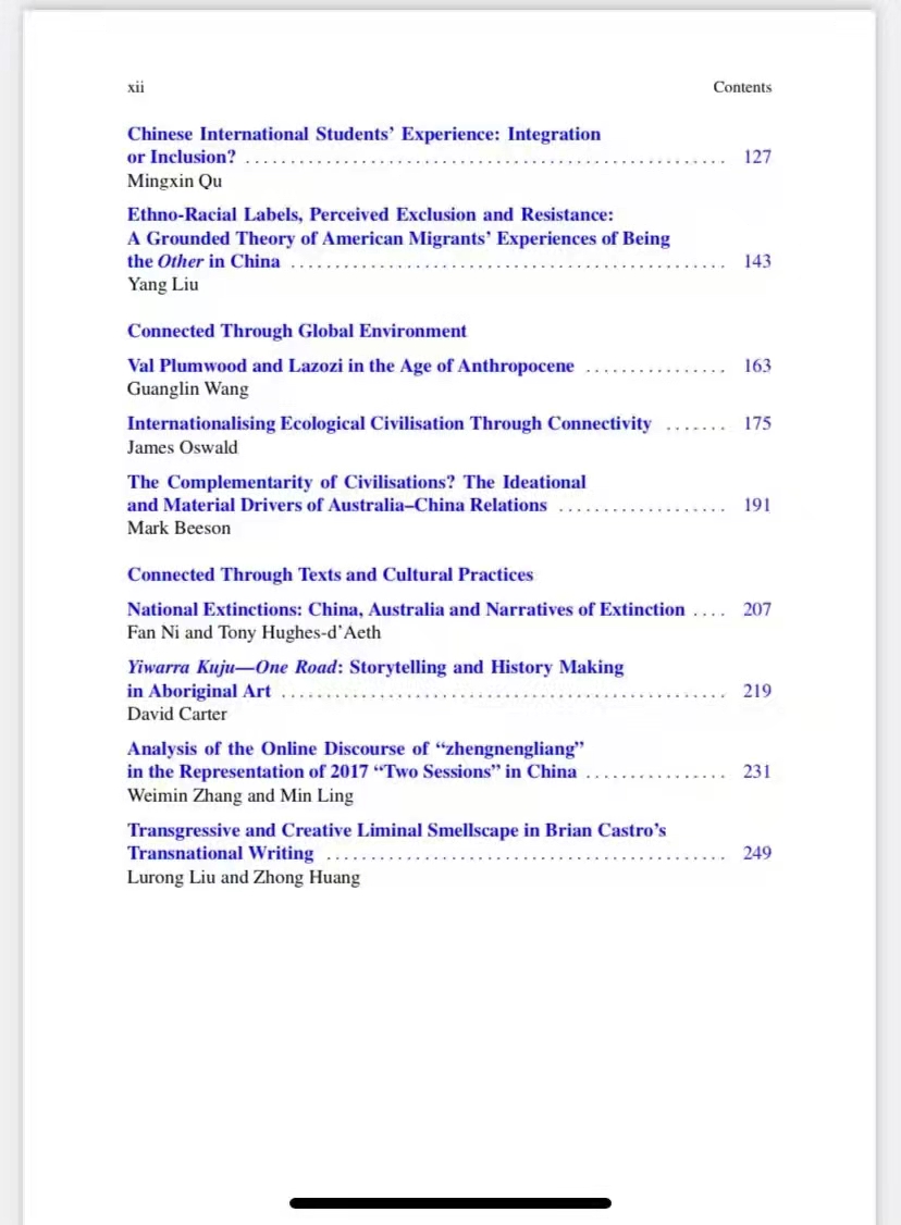 论文集延续了Springer出版社“Encounters between East and West: Intercultural Perspectives”系列的关注点,围绕“Transcultural Connections:Australia and China”(中澳跨文化联系)的主题,集结出版了2019年CATS会议期间的优秀论文及部分特邀稿件,由Greg McCarthy教授、孙有中教授、Xianlin Song副教授主编。国产视频