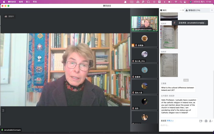 爱尔兰研究中心主任王展鹏教授主持。陈丽教授、张珺涵、爱研学生、其他院系对爱尔兰有兴趣的学生、以及校外师生等170余人参与了本次讲座。