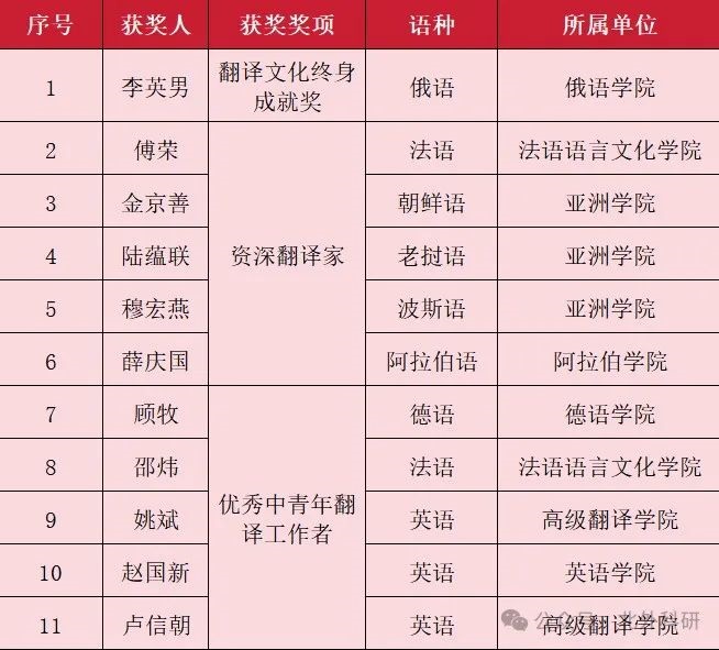 赵国新教授凭借其在翻译领域的杰出贡献,荣“优秀中青年翻译工作者”奖项。