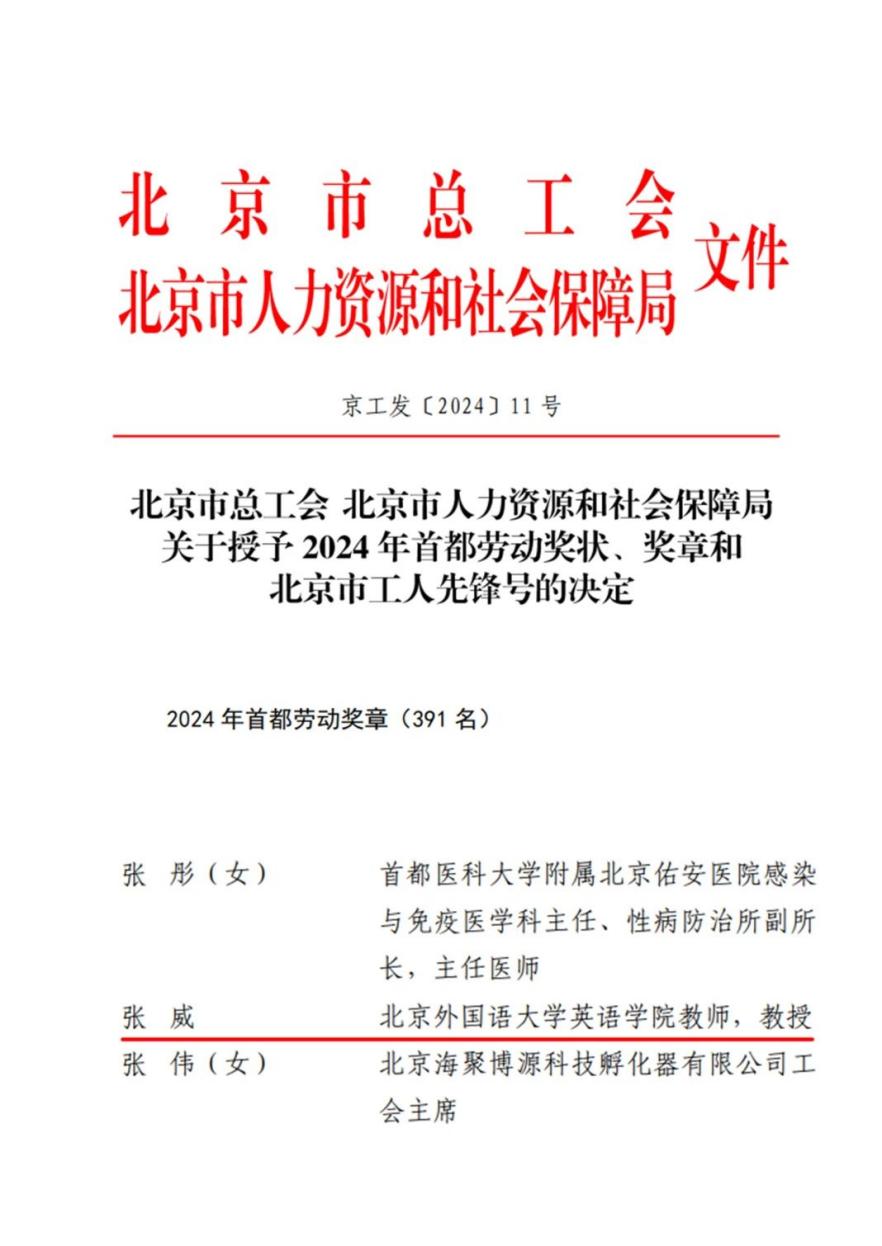 张威教授荣获“首都劳动奖章”,这是国产视频