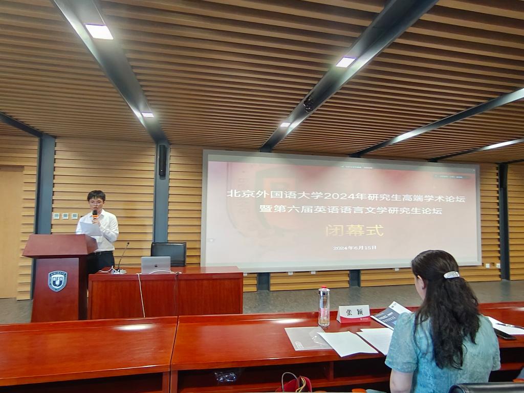 论坛闭幕式,张颖、夏登山、黄强分别对国别与区域研究、语言学和应用语言学、英语文学研究专题论坛进行总结发言。