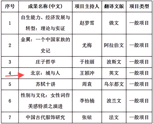 王颖冲副教授的《北京:城与人》获一般项目立项。