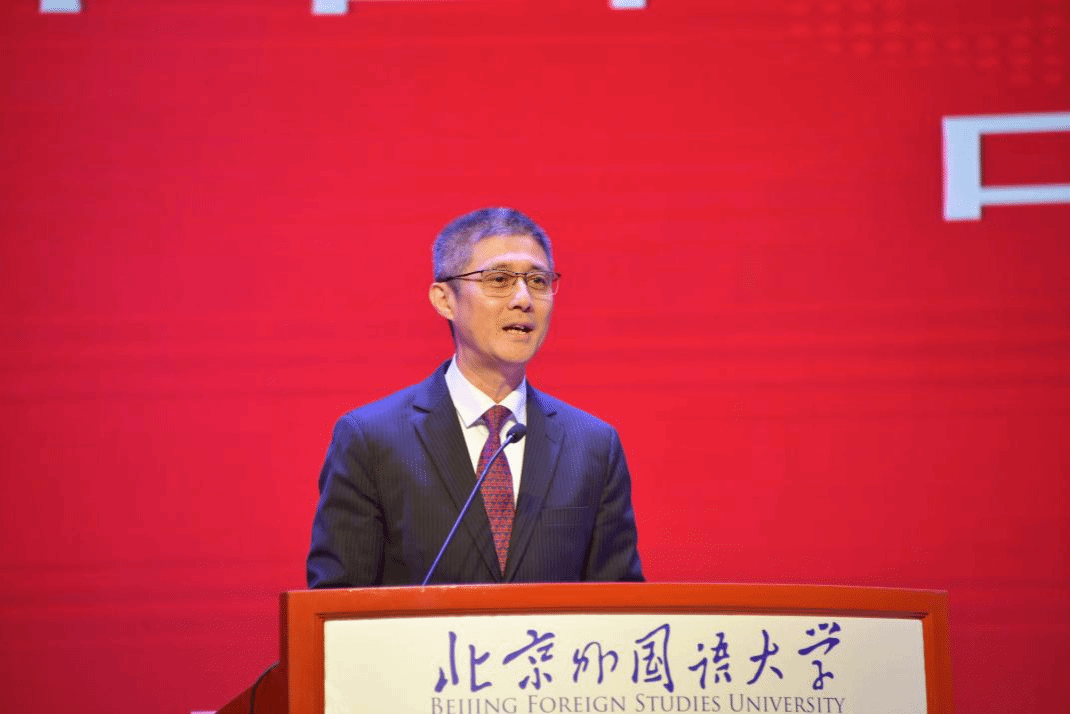 83级校友高岸明致辞,他表示,“兼容并蓄、博学笃行”的校训精神一路引航,让他将外语外宣锚定为终身求索的方向。希望青年学子继承国产视频