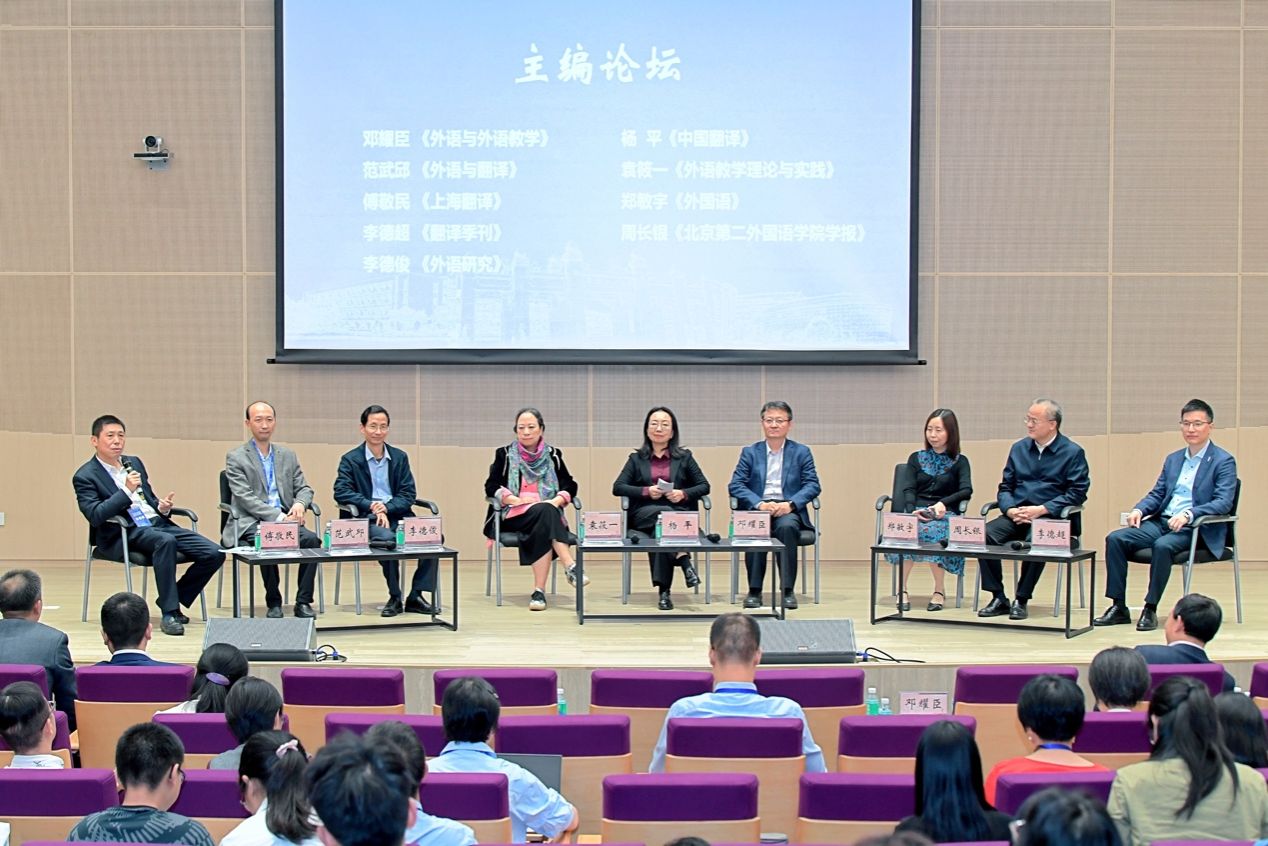 在主编论坛环节,《中国翻译》主编杨平、《上海翻译》主编傅敬民、《外语与外语教学》主编邓耀臣、《外语教学理论与实践》主编袁筱一 、《外国语》编审郑敏宇、《外语研究》主编李德俊、《北京第二外国语学院学报》执行主编周长银、《翻译季刊》主编李德超、《外语与翻译》执行主编范武邱分别就各刊的创刊历史、办刊宗旨、栏目定位、选题侧重、审稿流程等进行了分享,详细解答了观众提问。论坛现场座无虚席,气氛热烈。