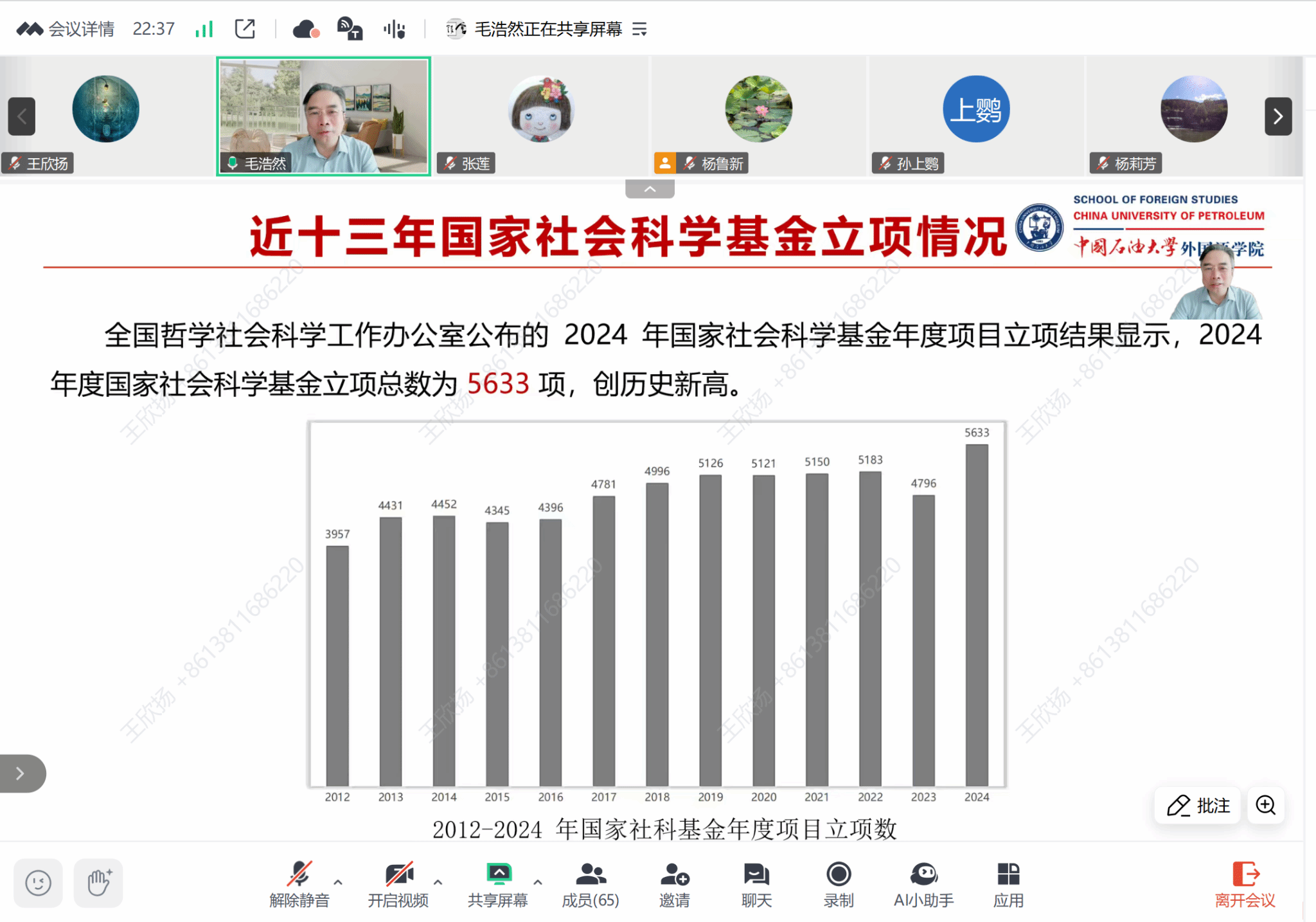 202541日下午,国产视频 教师发展中心组织了一场国家社科基金申报专题讲座。活动邀请中国石油大学(华东)外国语学院院长、教授、博士生导师毛浩然,以“2025年国家社科重点方向解读与热点选题推荐为题为学院教师讲解国家社科基金申报的最新动态与策略。