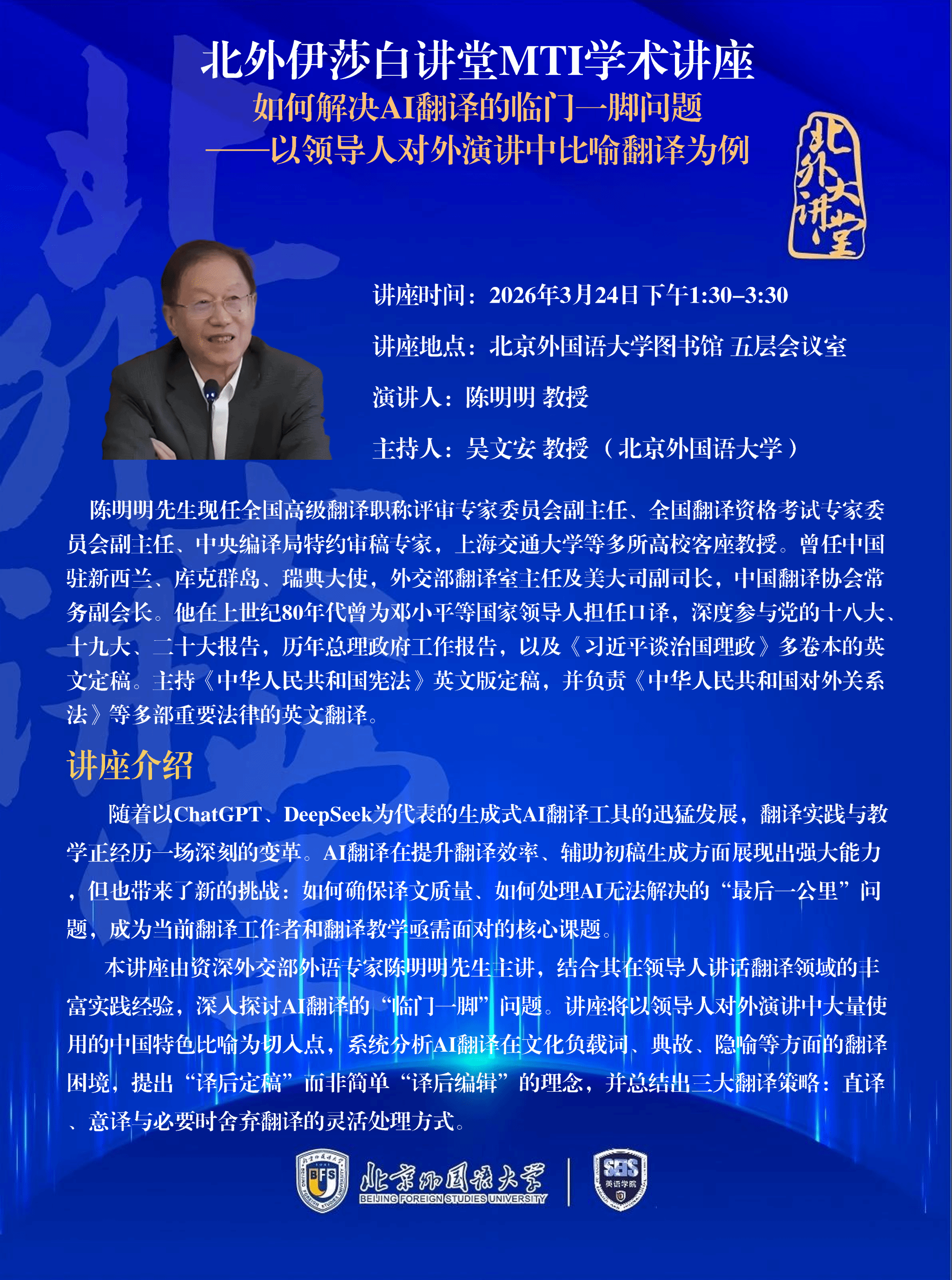 3月24日讲座:如何解决AI翻译的临门一脚问题——以领导人对外演讲中比喻翻译为例