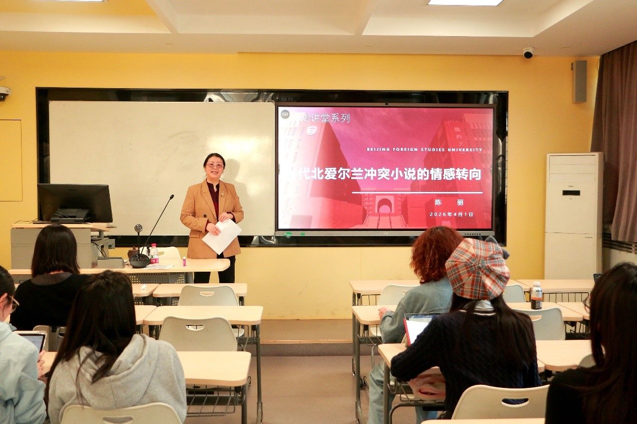 “知周讲堂”系列讲座如期举行。陈丽老师以“当代北爱尔兰冲突小说的情感转向”为题,为师生带来一场兼具学术深度与文学视野的分享,系统梳理北爱冲突文学的发展脉络与创作新趋势,吸引众多师生到场参与。