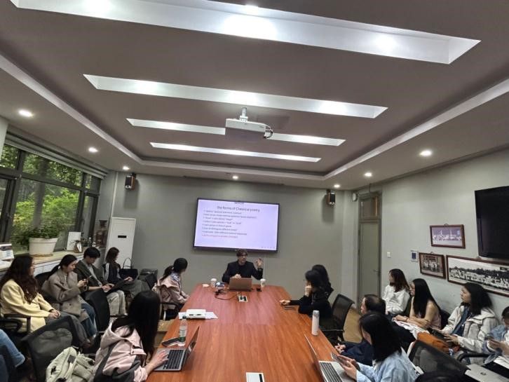 英语文学研究中心之邀,于学院111会议室做了题为“The Forms of Classical Poetry”(西方古典诗歌的形式)的学术讲座。由英语文学研究中心、《英语文学研究》编辑部承办,旨在为广大师生提供一个深入了解古希腊、古罗马诗歌主要韵式的机会。本次讲座由英语文学研究中心邵雪萍老师主持,吸引了来自不同院系的本科生、研究生、博士生及青年教师近四十人参加。