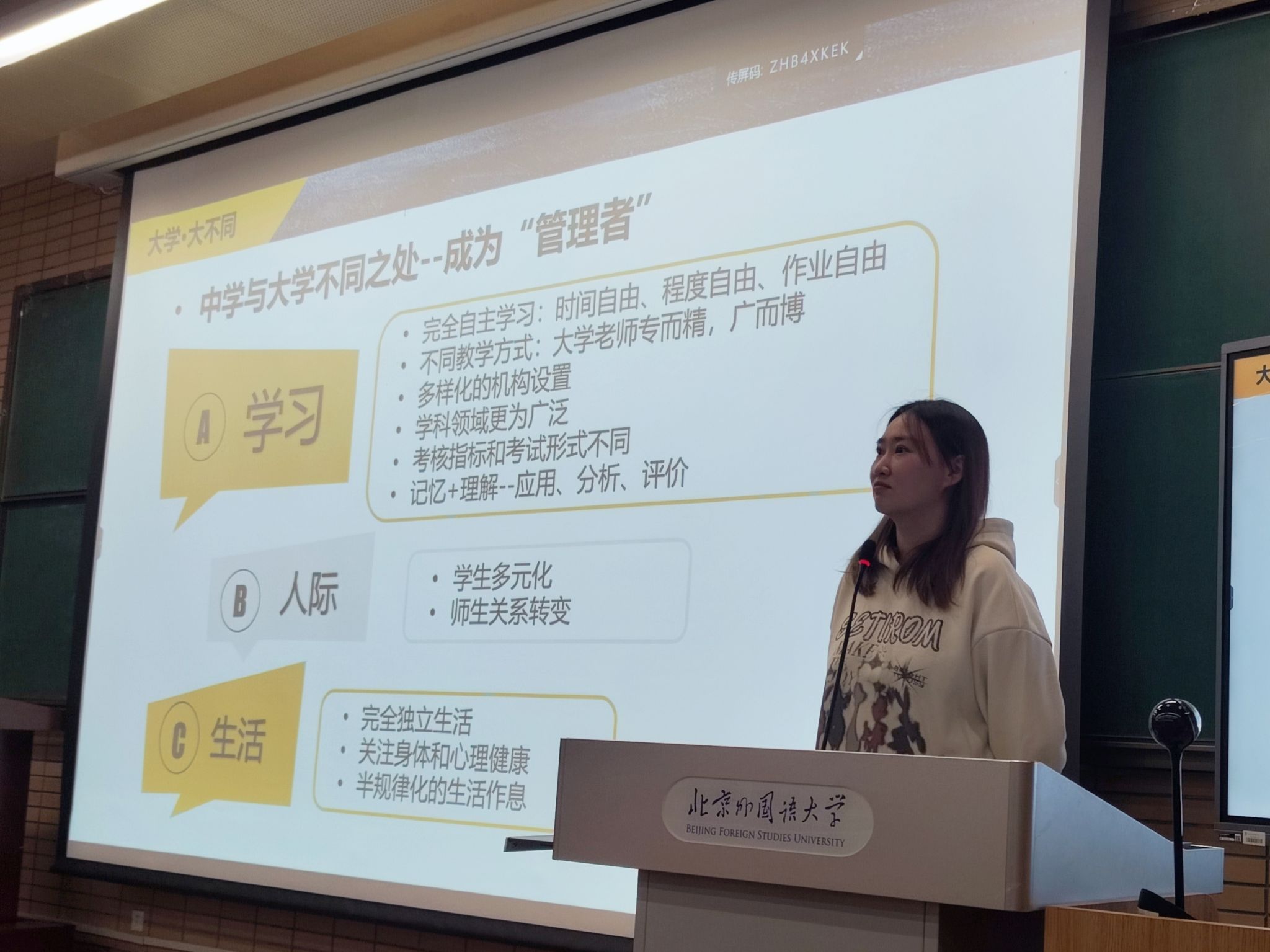 心理健康教育与咨询中心实习咨询师沈子茜老师,面向全体新生开展团体辅导活动。