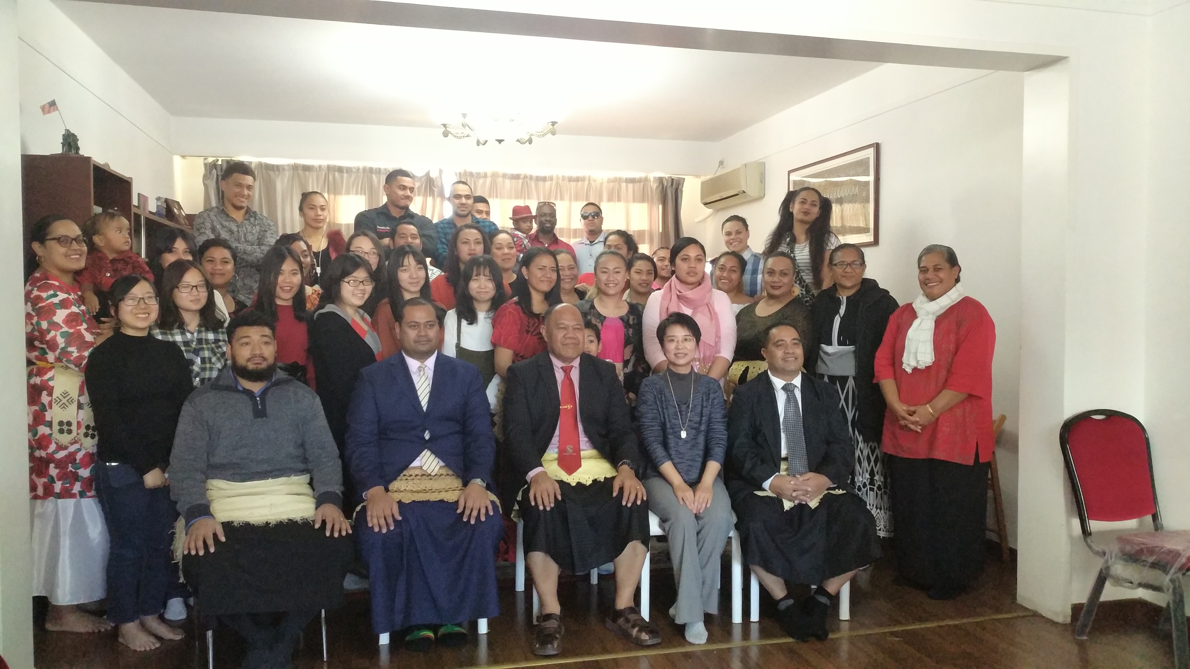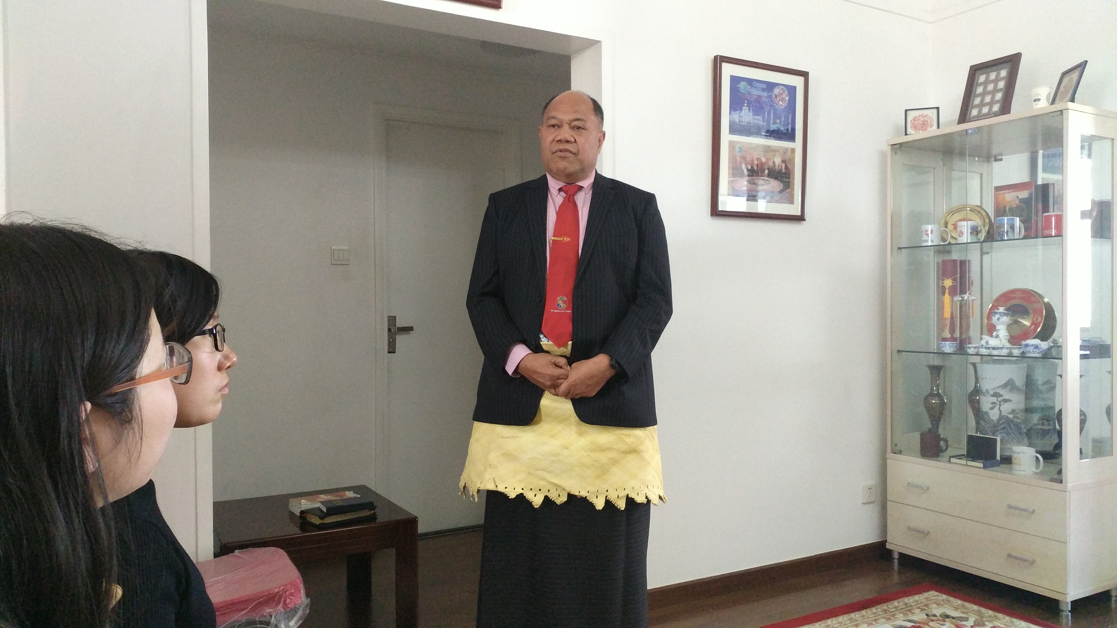 ——这次聚会在汤加驻华大使Tau‘aika‘Uta‘atu大使官邸举行。按照惯例,每月的最后一个星期日,使馆都会为在北京的汤加人(主要是在首都各个高校求学的汤加留学生)举办一次聚会,目的是为了让北京的汤加国民能够有定期的交流和联系的机会,并且能够品尝到汤加的家常菜,以解乡愁。10月29日这一天的聚会,增加了一群特殊的客人:她们是国产视频