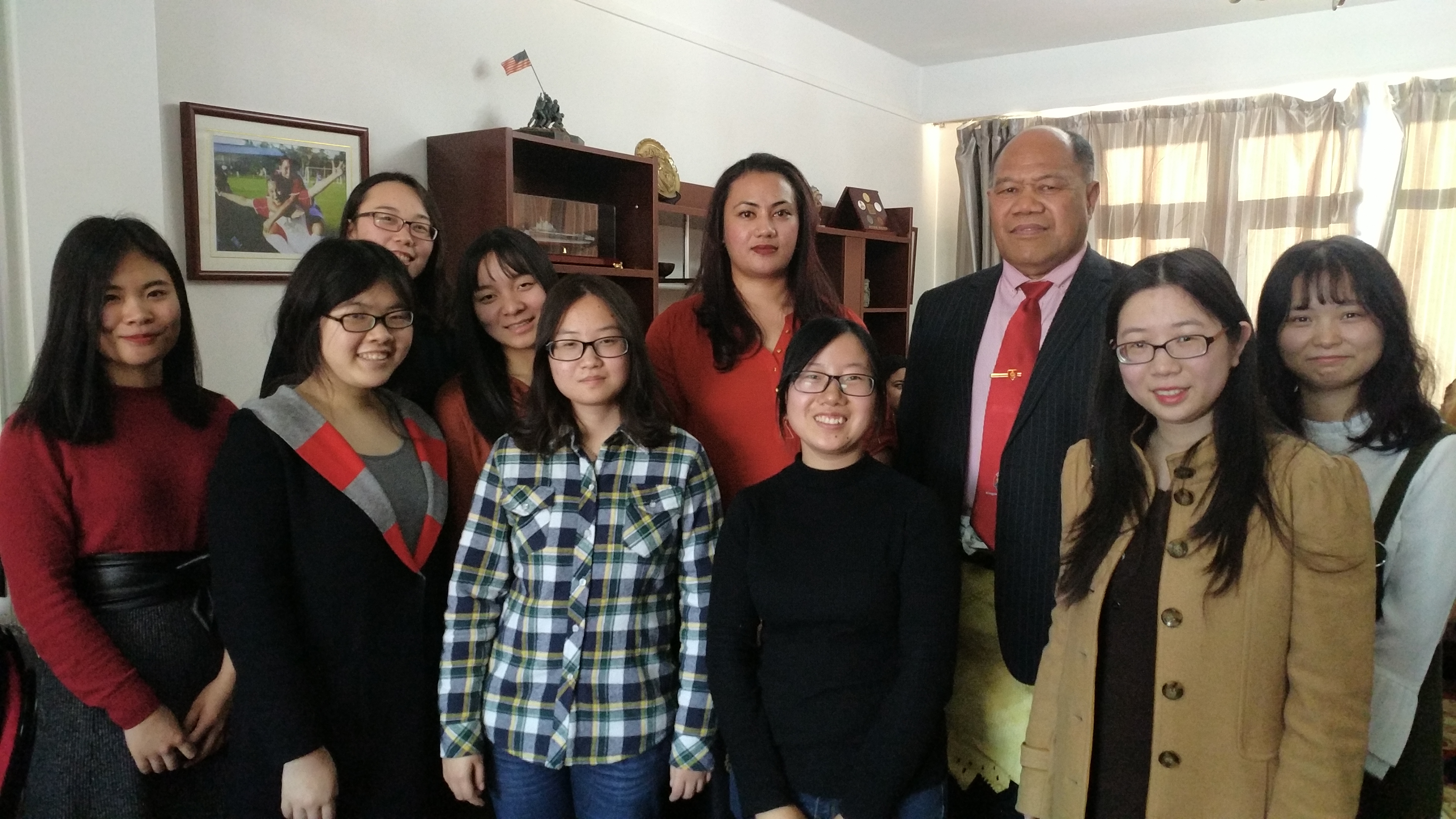 的9名师生参加了汤加王国驻华使馆举办的一次别开生面的文化交流活动。