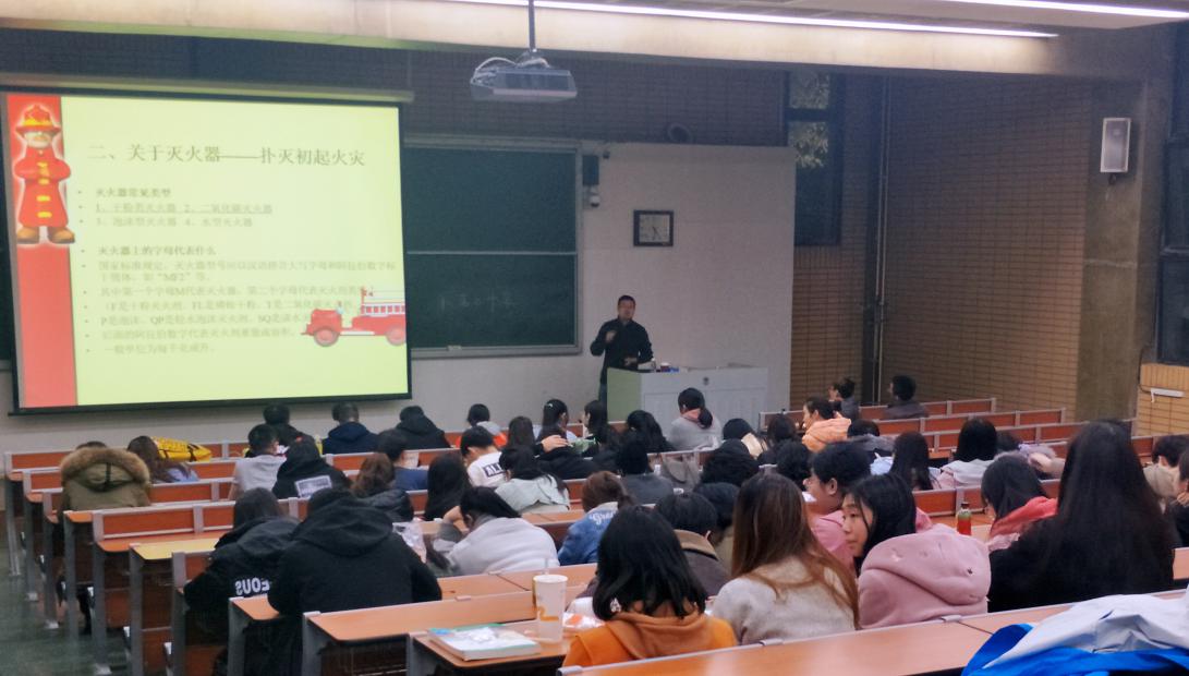 在东校区逸夫楼第二阶梯教室为2018级国际预科班新生举办了一场校园安全和消防知识讲座。
