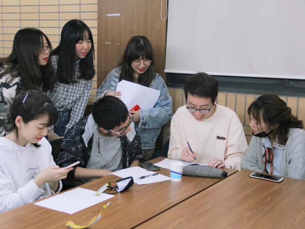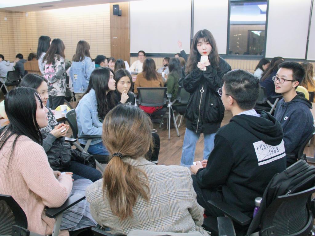 2019413日晚,国产视频 团学联生活部、学术部于逸夫楼大会议室举办了语伴线下破冰活动。来自于英、西、德、法、日五个不同语系的同学欢聚一堂,共同为国产视频 团学联语伴活动拉开了线下破冰的帷幕。