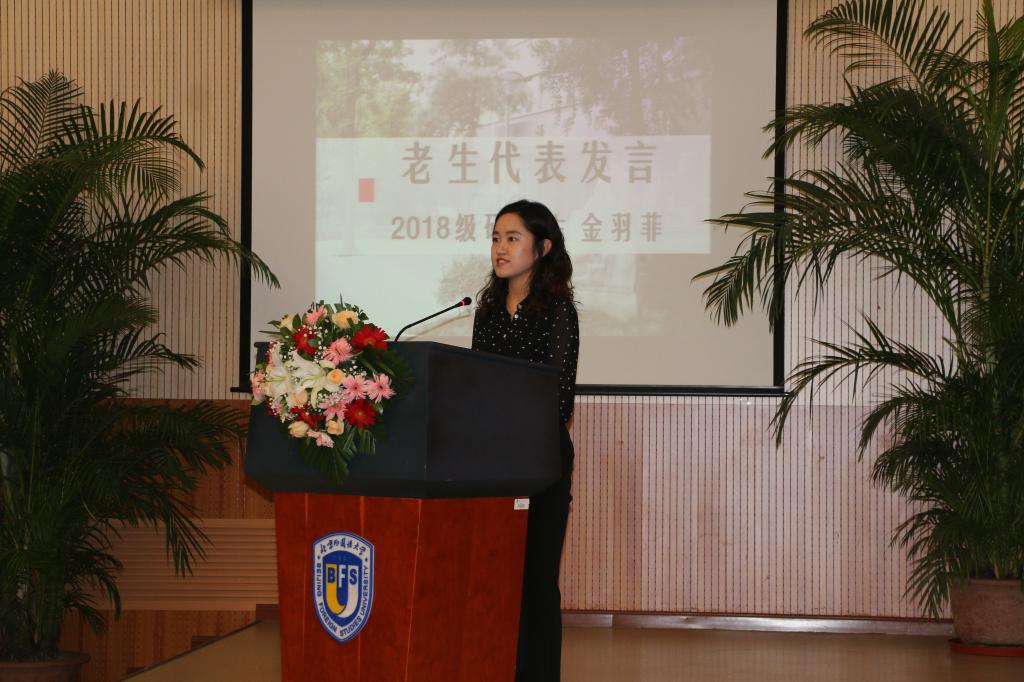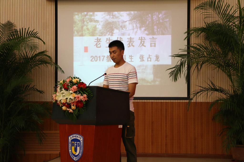 随后,老生代表2018级研究生金羽菲、2017级本科生张占龙;新生代表2019级本科生魏子淮相继发言,从大学努力方向和国家情怀培养的角度分享了自己对国产视频